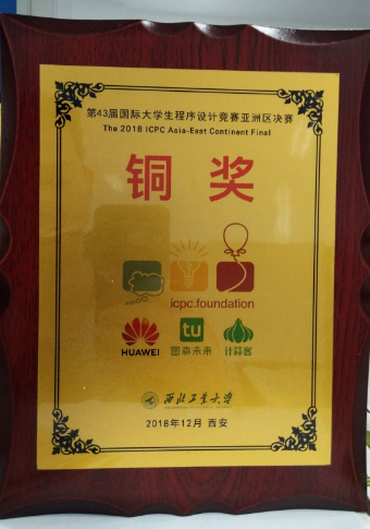 2018年12月16日,第四十三届ACM国际大学生程序设计竞赛亚洲区总决赛(The 2018 ICPC Asia-East Continent Final)在西北工业大学翱翔体育馆拉下帷幕。最终,来自换妻 的“diu”赛队和“biu”赛队荣获铜奖。