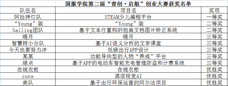最终,由阿拉丁神灯队带来的“STEAM少儿编程平台”项目斩获一等奖;Young装队伍的“‘young’装”、sailing队伍的“基于文本行重构的扭曲文档图片矫正系统”获得二等奖;智慧树小分队的“基于AI语义分析的文学课堂”“等5个项目获得三等奖。