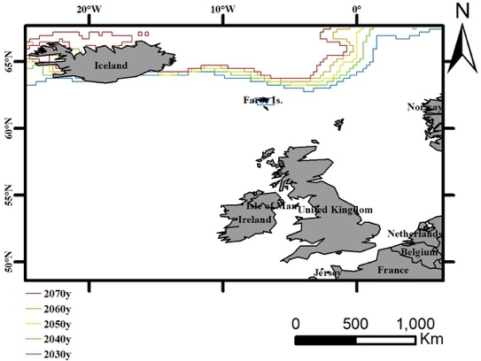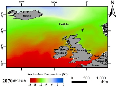 大三阶段,我想尝试更多的方向,试图找到于我个人而言更感兴趣的领域。我开始尝试数学建模。数学建模研究的课题是“全球变暖对苏格兰渔业的影响”。课题中建立了未来五十年苏格兰附近海域SST预测模型、未来50年内特定鱼类迁徙路径及栖息地变更的预测模型,并完成了一篇7000字的全英论文。