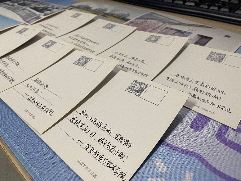 此次活动还为每位考公同学送上贺卡,上面是学院研究生会干部干事写下的“祝君旗开得胜,得偿所愿”、“前程似锦、无不识君”、“愿此行纸绵墨利,笔也顺手;愿提笔落下时,挥斥方遒于胸”等美好祝福。