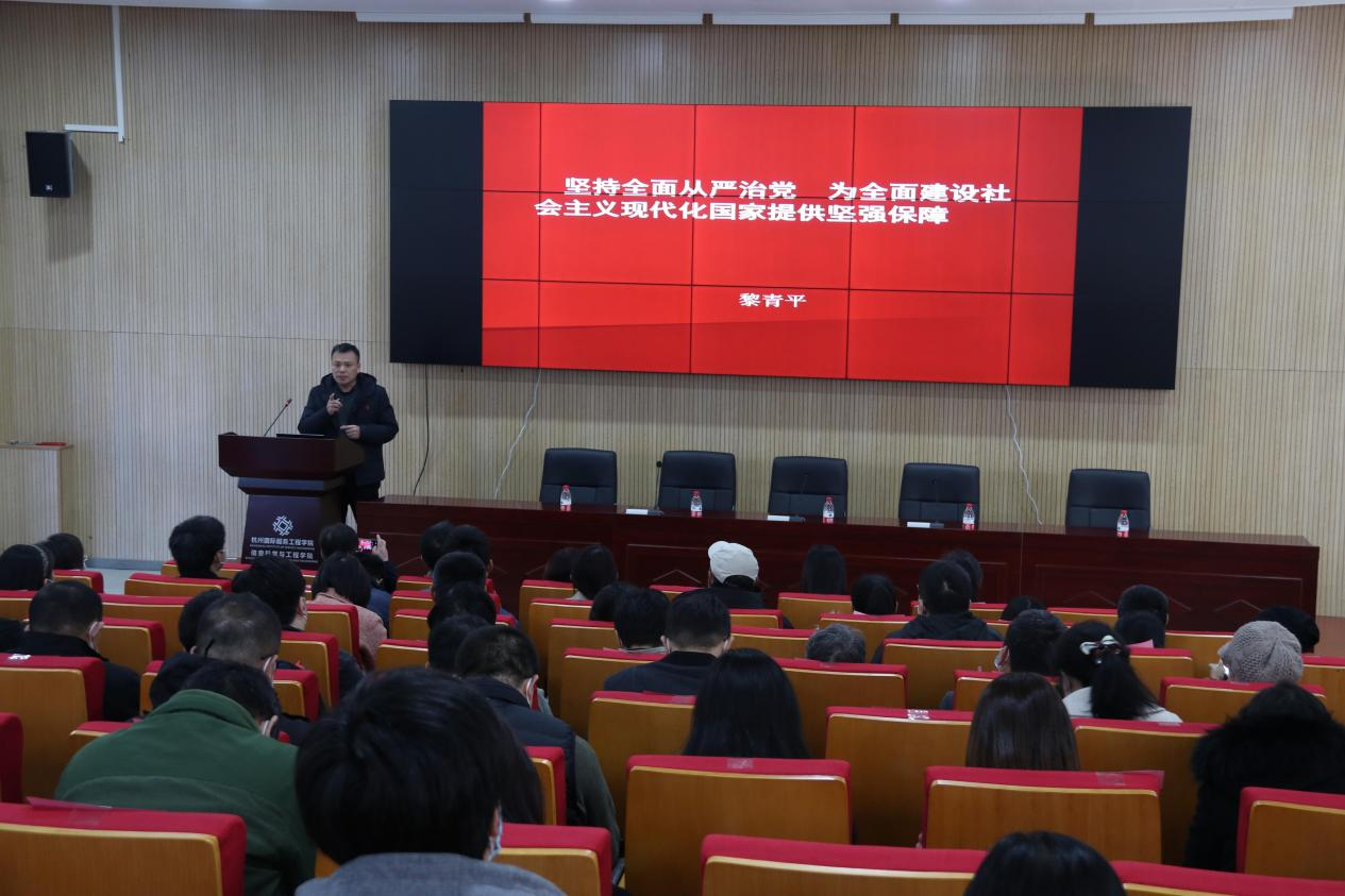 为深入学习十九届六中全会精神,贯彻落实校党委党史学习教育要求, 11月24日下午,换妻 党委特邀学校党史宣讲团成员黎青平教授在勤园11-106报告厅为学院全体教职工作“坚持全面从严治党 为全面建设社会主义现代化国家提供坚强保障”的主题讲座,学院党政班子全体成员、全体教职工到场参加,本次报告由学院党委书记周春儿主持。