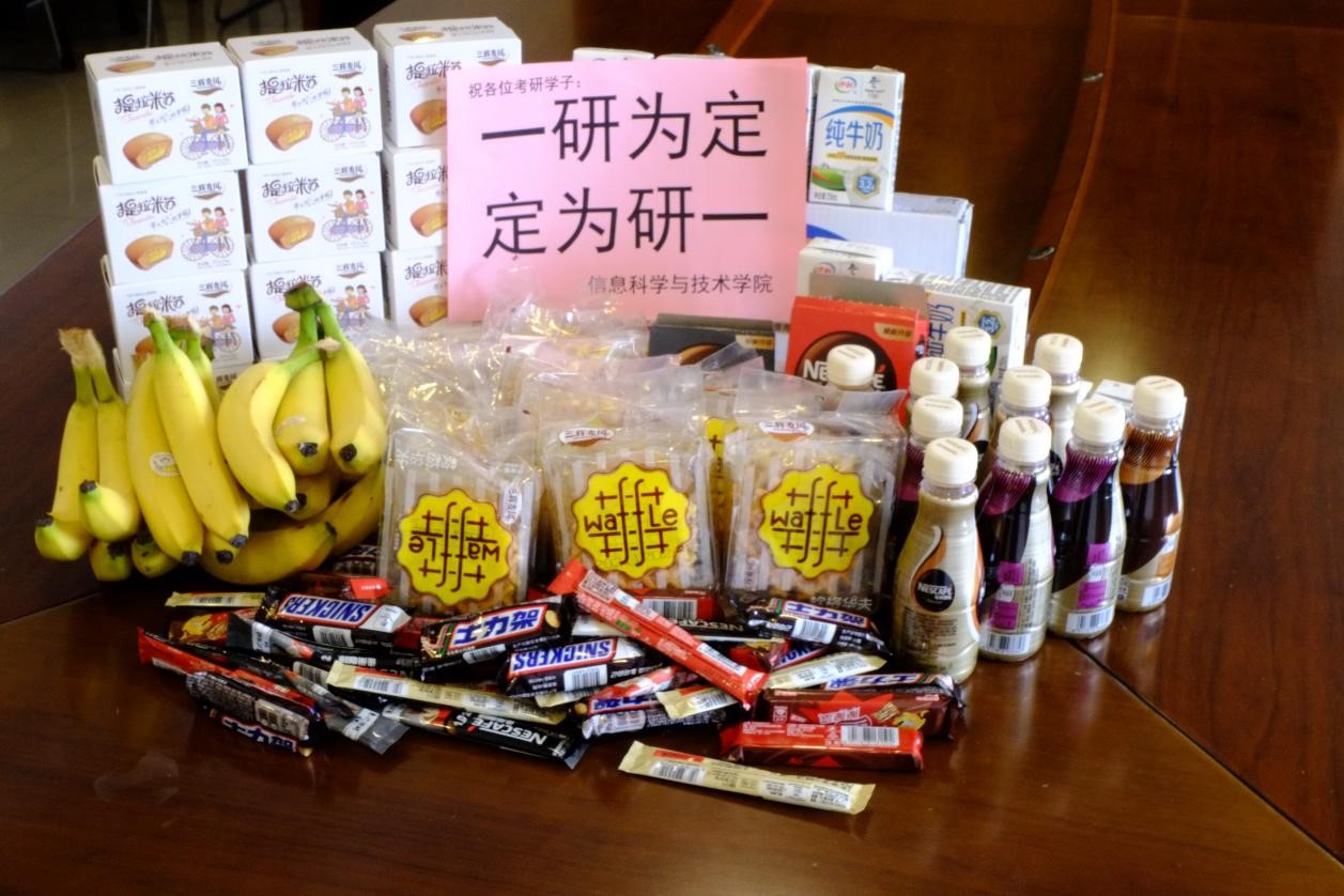 休息室内,学院准备了热水、咖啡、点心、牛奶、小文具等,免费提供给考生;志愿者也提前开启休息室的空调,保证考生能有一个温暖舒适的环境休息和复习;同时学院每天安排5名志愿者指定对接考研学生,及时帮助考生解决问题。