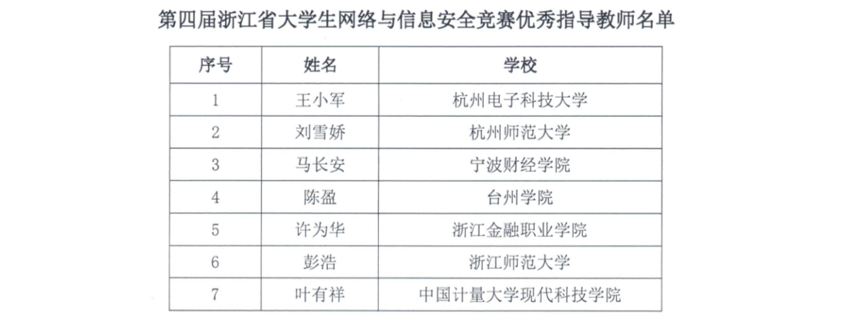 附件2:第四届浙江省大学生网络与信息安全竞赛优秀指导教师名单