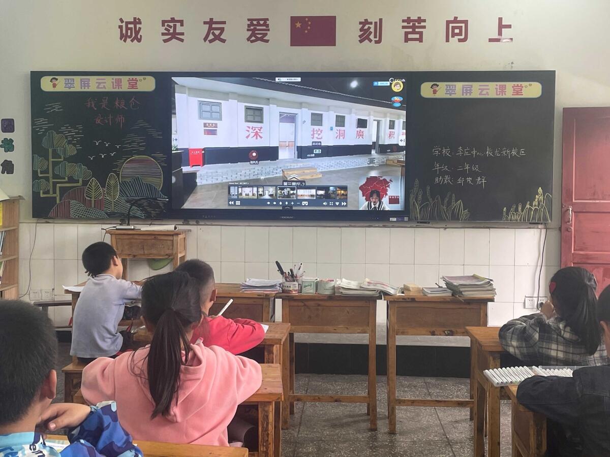 四川省宜宾市李庄镇中心小学学生正在“云”游余杭四无粮仓陈列馆。
