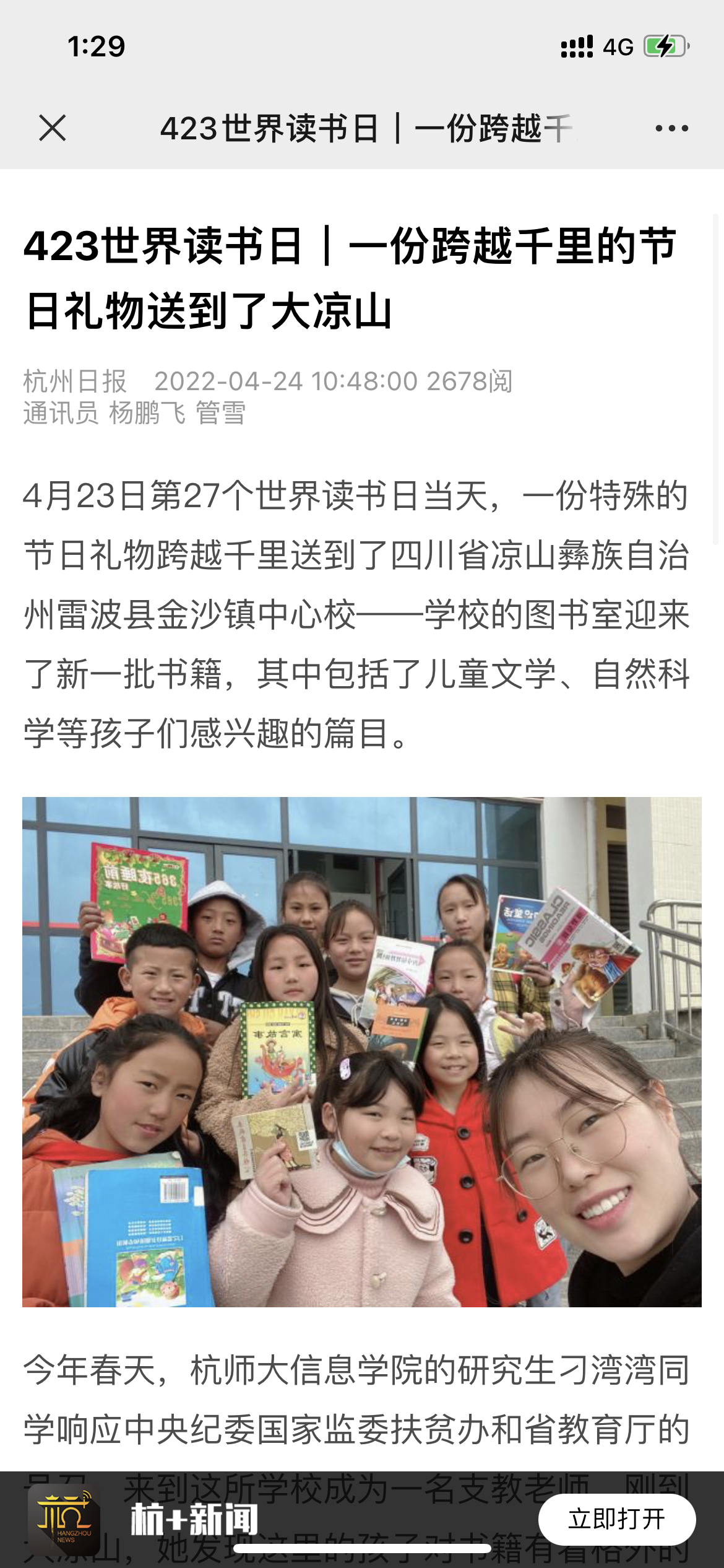 【媒体关注】杭州日报:423世界读书日|一份跨越千里的节日礼物送到了大凉山
