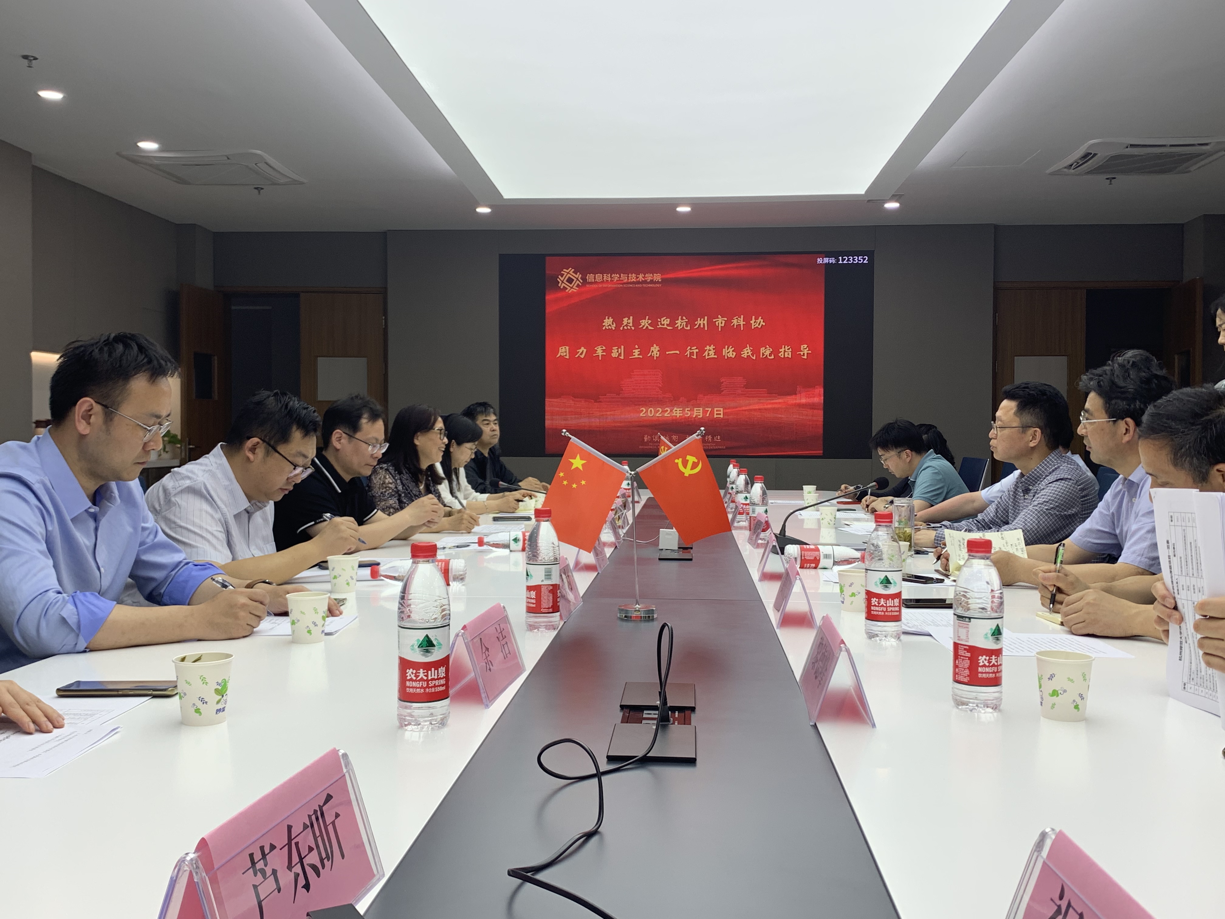 5月7日上午,杭州市科协党组成员、副主席周力军带领市科协科普部、中国低碳科技馆馆长陈仲达、余杭区科协主席黄庆芳及相关人员一行8人来换妻 走访调研。换妻 副校长胡华、科研处处长张杭君及学院党政班子成员陪同。
