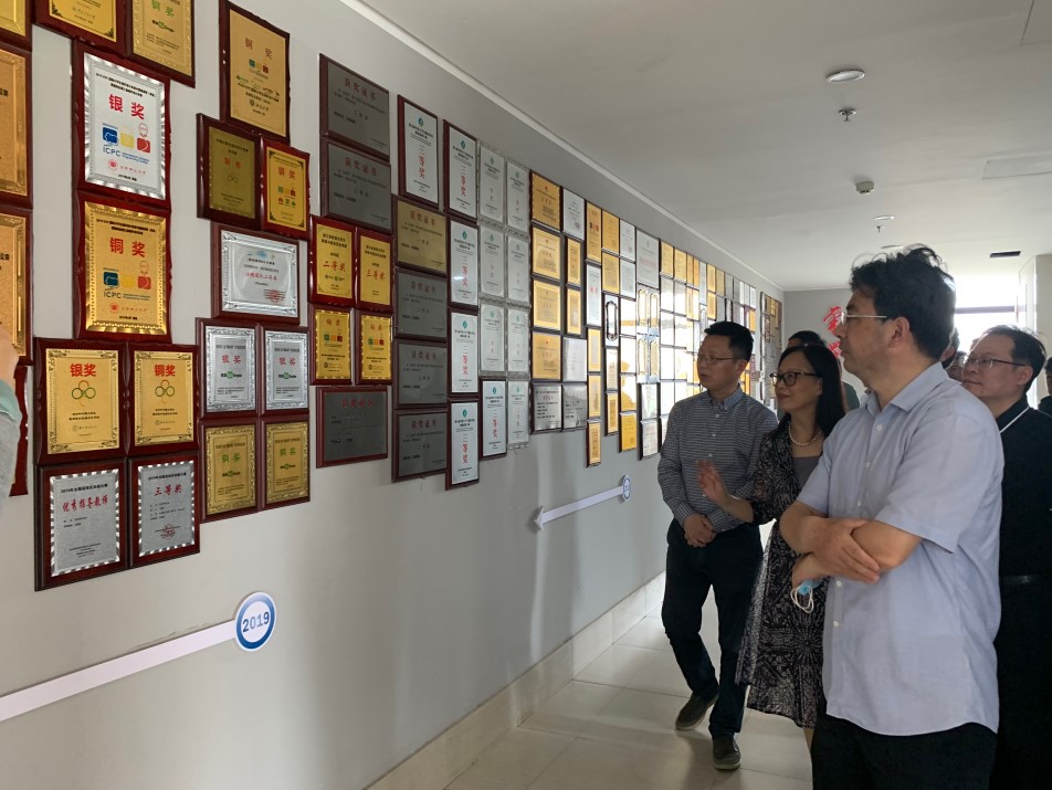 杭师大副校长胡华在学校行政楼沙盘展示中心前向市科协副主席周力军介绍了杭师大在杭州市、余杭区的关心支持下,经过历任校领导和广大师生员工的共同努力、辛勤耕耘、强抓机遇,不断发展壮大,跨入全国百强名校。随后,周力军一行实地考察了校史馆。