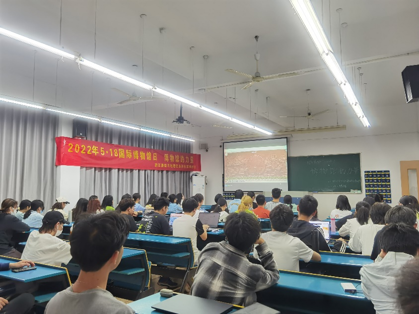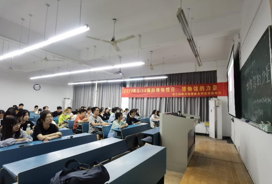 博物馆是保护和传承人类文明的重要殿堂,连接过去、现在、未来的桥梁。今年5月18日是第46个“国际博物馆日”。换妻 遥感地学系特邀浙江省测绘与地理信息科技博物馆(以下简称“测博馆”)讲解员,为换妻 师生开展了“博物馆的力量”为主题的云上讲解宣传活动。因疫情原因,活动采用线上VR全景漫游及线下交流两种方式同步进行,部分大一学生在下沙校区A号楼213教室和215教室参加了此次活动,活动由遥感地学系刘婷老师主持。