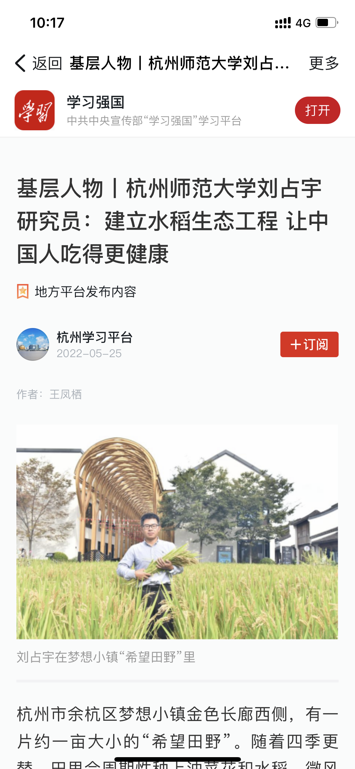 【媒体关注】学习强国:基层人物丨换妻 刘占宇研究员:建立水稻生态工程 让中国人吃得更健康