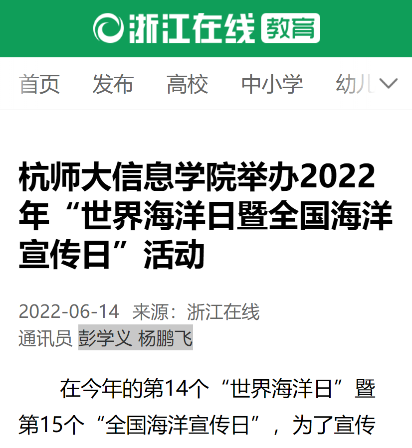 【媒体关注】浙江在线教育频道:杭师大换妻 举办2022年“世界海洋日暨全国海洋宣传日”活动