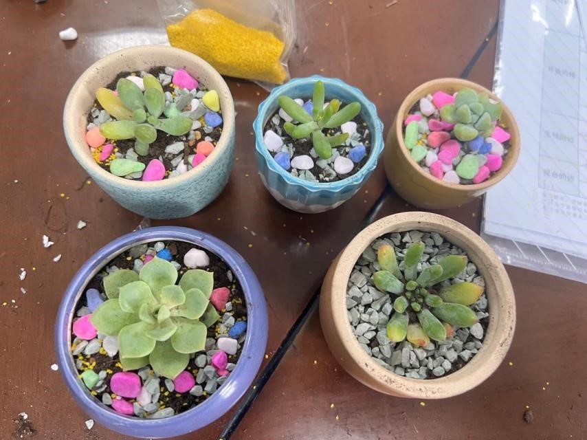 宁波银行的员工们悉心指导同学们制作多肉盆栽。首先选好多肉花盆,在盆地垫上少量草,防止营养土流失。然后将营养土放入花盆中,在泥土中嵌入多肉的根,将多肉栽种进去,最后在多肉周围铺上装饰小石子,一盆盆可爱的多肉就制作完成啦。宁波银行与换妻 师生一同遨游在手工栽种的快乐中,在盆栽DIY中收获了快乐与友谊。活动结束后,工作人员向学院有需要的老师和同学提供了金融咨询、签到积分兑换、银行业务一对一咨询等服务。
