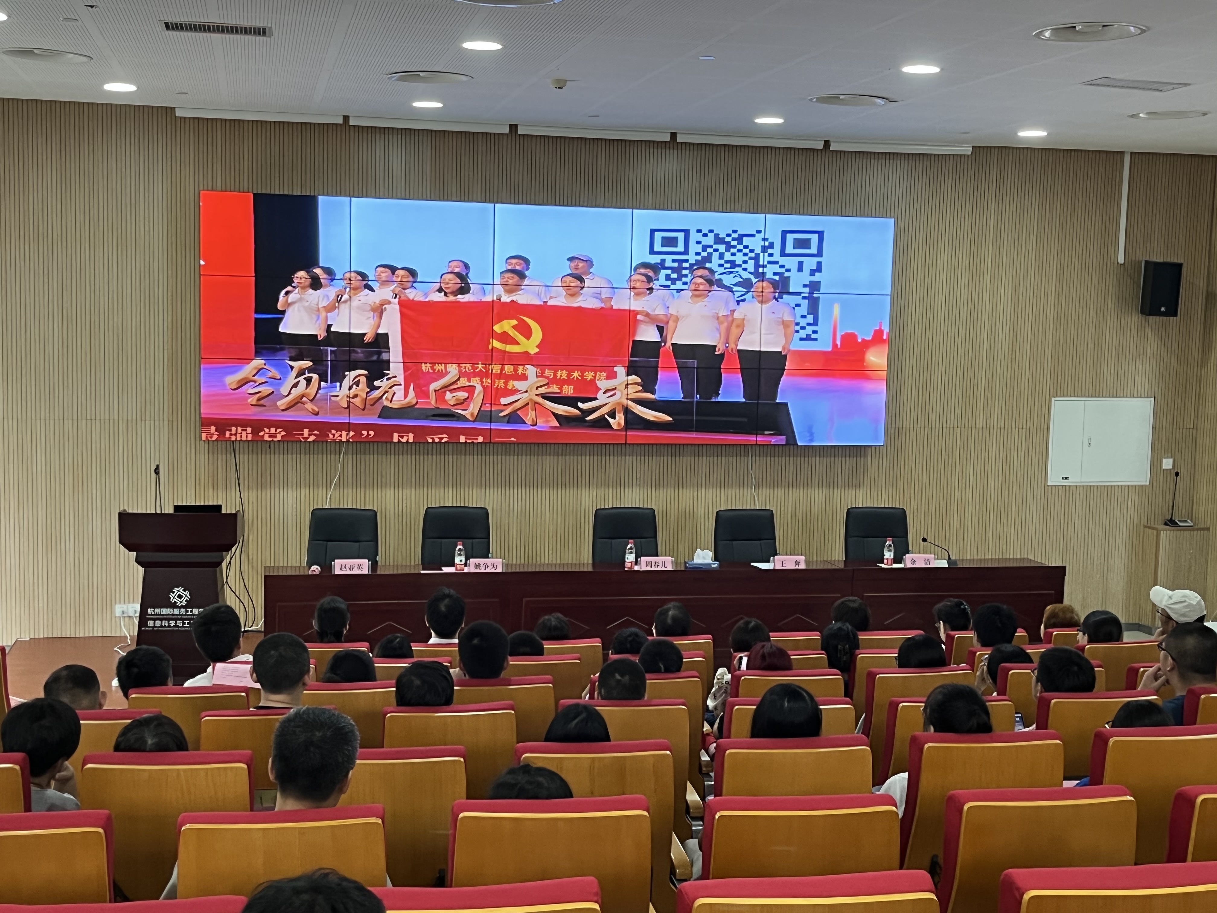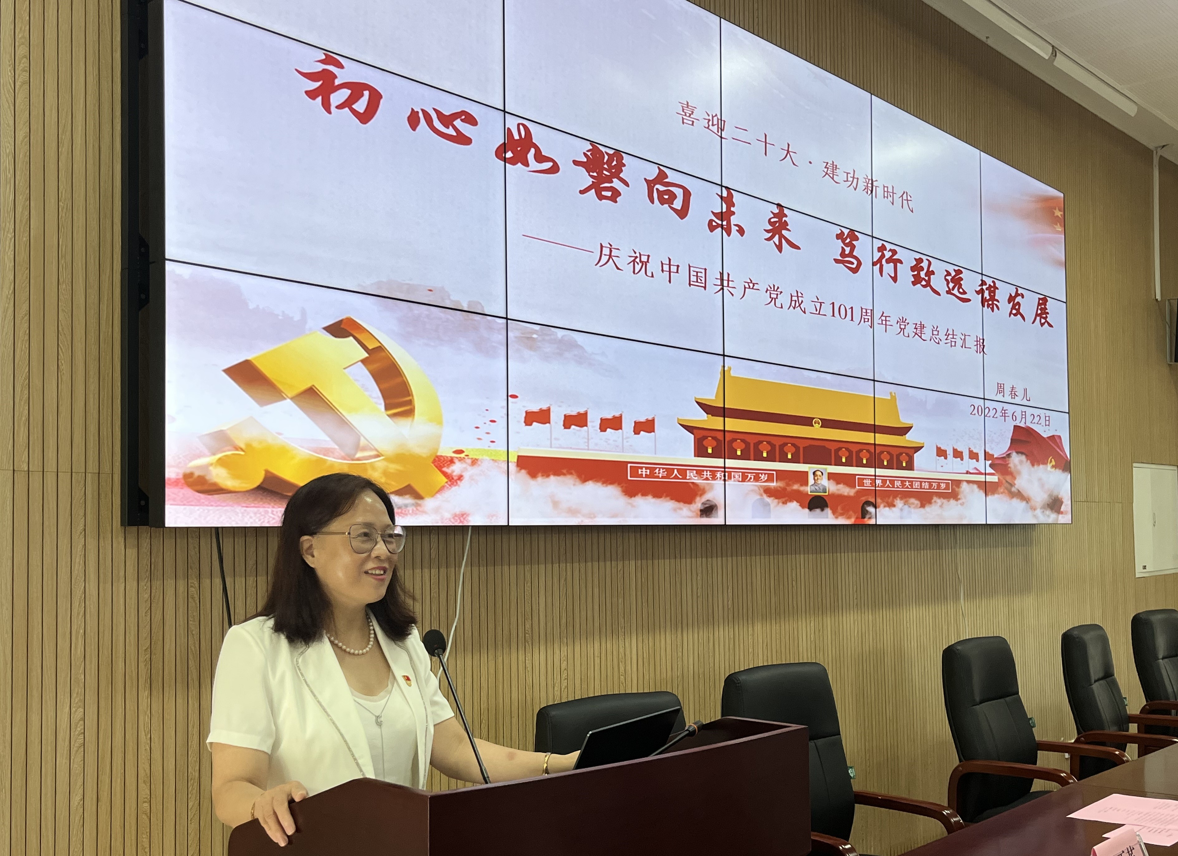 学院党委书记周春儿讲话,她首先从学院党史学习、政治建设、组织建设、作风建设、宗旨意识、宣传文化与意识形态工作、围绕中心工作抓党建等七个方面,对学院一年来党建工作的举措和取得的成效进行了回顾与总结。她指出,学院的党建工作具有突出的特色和亮点,体现在以下几个方面:一是创新“VR+党建”构建虚拟党史学习馆,探索沉浸式党史学习教育新模式;二是联动多方,数字化社会服务助力“数智杭州”建设;三是积极推进课程思政,形成教学科研育人协同效应;四是组织运营校园114党员服务中心网上平台,构建一体化数字服务团队。对于学院党建工作的未来发展,周春儿书记指出,要以立德树人为中心,实施党建标杆院系“12345”工程,即围绕一个“建设四型党组织”的目标,融合党建与思想政治工作、推动中心工作这二条线的发展,突出文化引领、数字赋能、创新服务这三大特色,建设“智慧党建展示窗口”、“数智赋能服务窗口”、“创新创业育人窗口”、“交叉学科科研窗口”这四个窗口,争做特色品牌、社会服务、先锋引领、中心发展、坚固堡垒的五星先锋。最后周春儿书记勉励各基层党组织和广大共产党员凝心聚力、开拓进取,牢记党员身份,奋力推进学院各项工作开展,并代表学院党委向全院所有师生党员致以 “七一”节日的真挚问候与热烈祝贺。