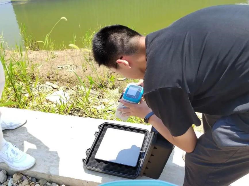 同时,实践分队向地理信息系统专业的同学学习水质检测方法,并借用相关仪器对丁字河进行了水质检测,发现除下游外水质均达标。小分队还根据检测结果前往水体黑臭的下游河段清理遗留垃圾。