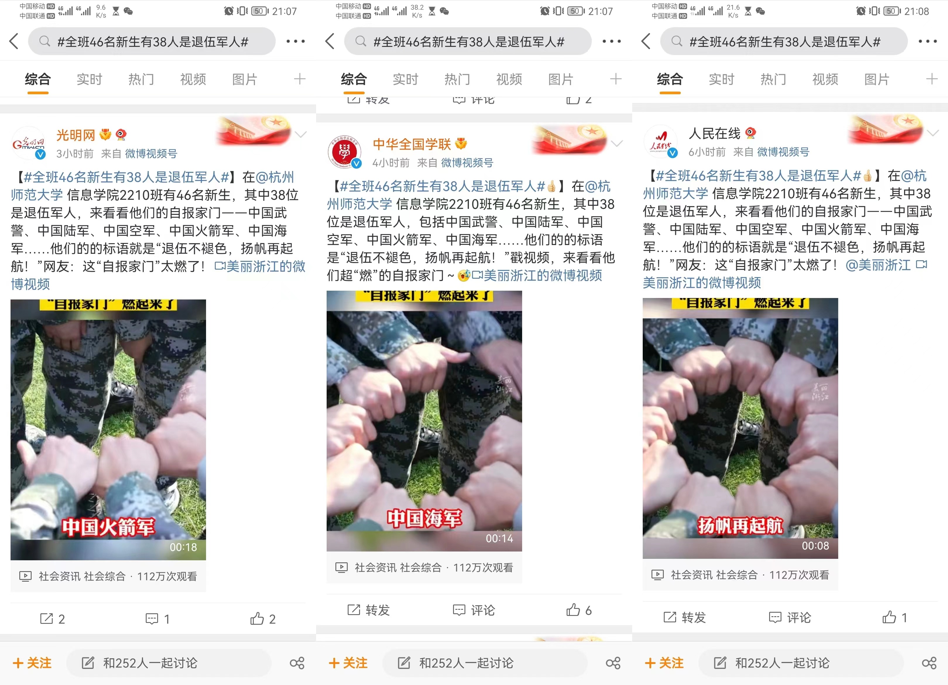 退伍不褪色,建功杭师大,计算机2210班抖音微视频获央视新闻等全国媒体广泛关注