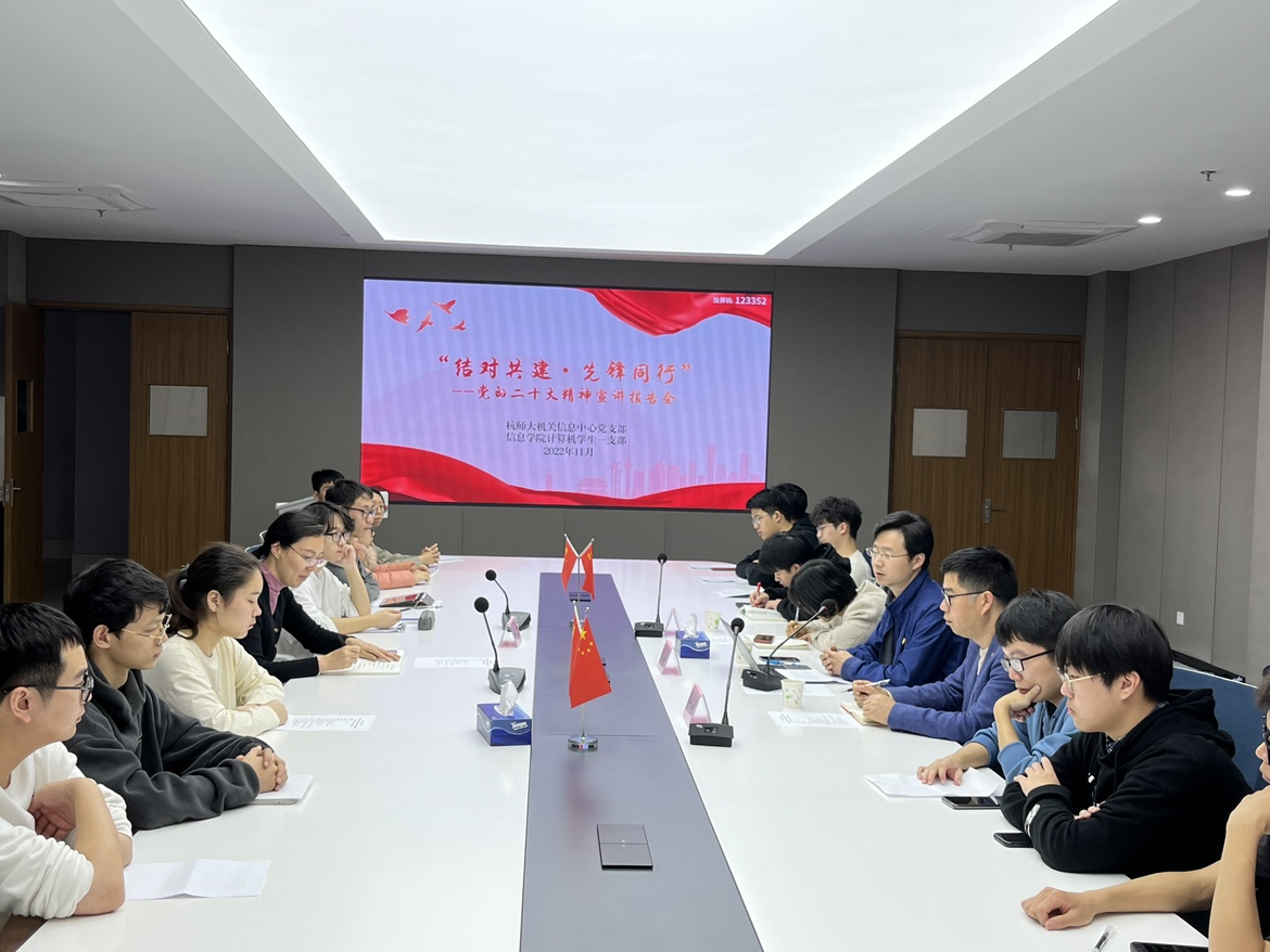 11月25日下午13:30分,杭师大机关信息中心党支部和换妻 计算机学生一支部进行了“结对共建·先锋同行”——党的二十大精神宣讲报告会。