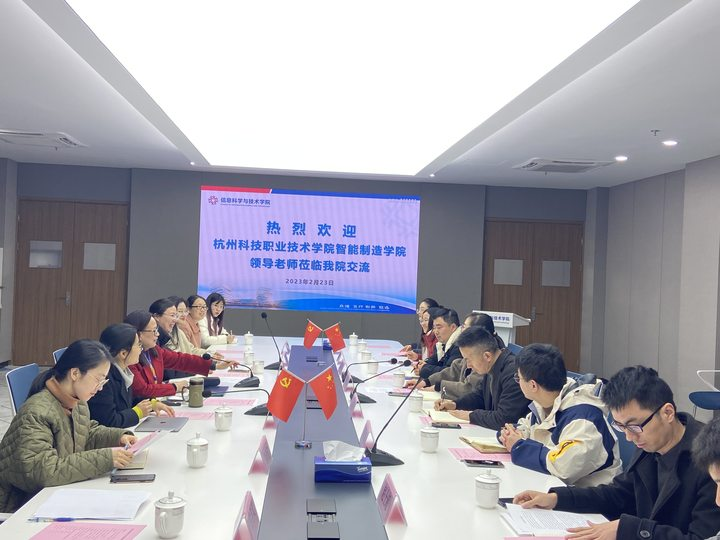 2023年2月23日下午,杭州科技职业技术学院智能制造学院党总支书记陈韵雯、党总支副书记张学良带院系负责同志一行来换妻 交流工作。换妻 党委书记周春儿、党委副书记余洁、党院办、辅导员、党支部代表等出席交流会。