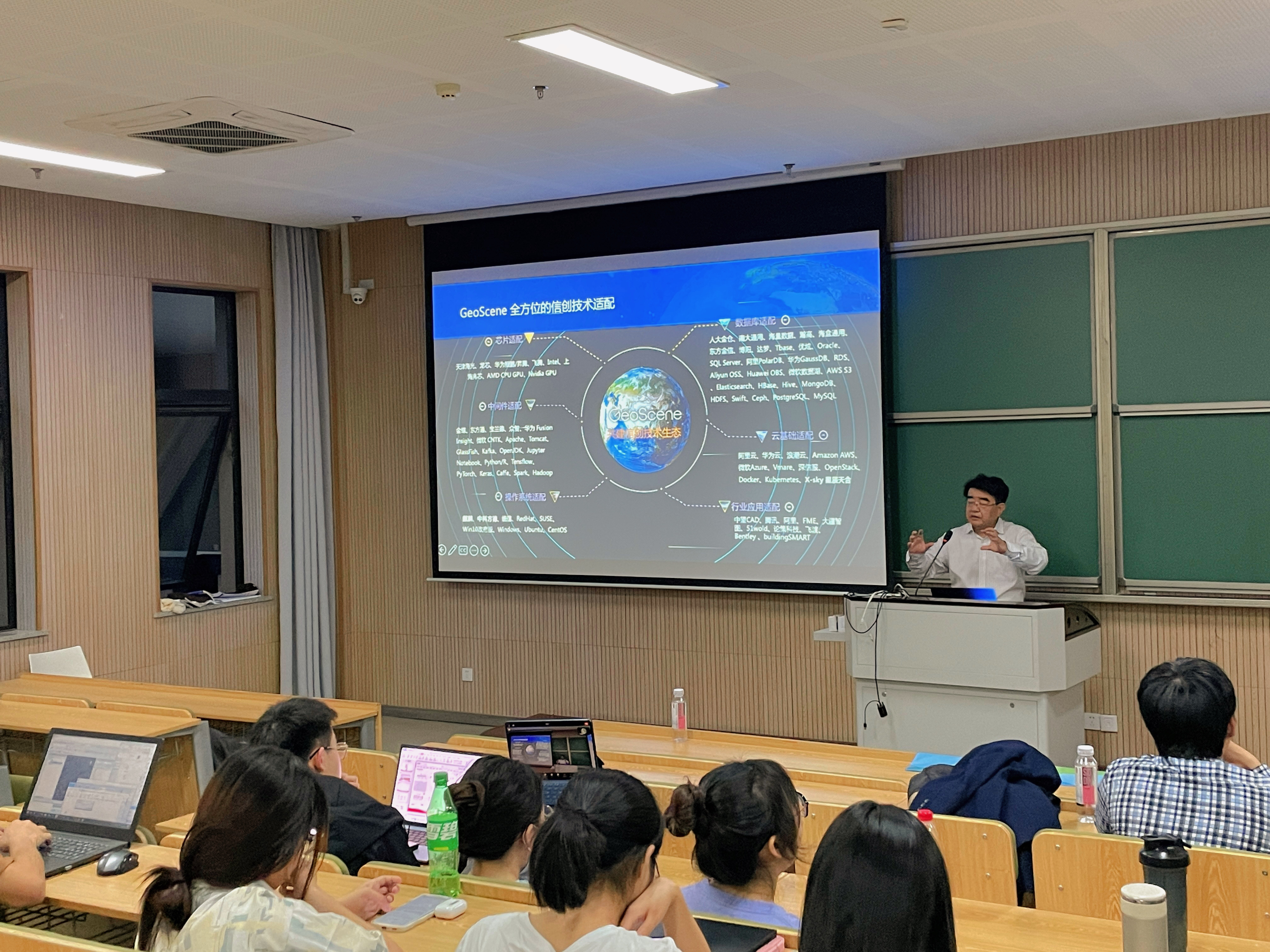 易智瑞信息技术有限公司高级副总裁兼首席咨询专家蔡晓兵、学院遥感地学系副主任谢斌老师、易智瑞信息技术有限公司上海分公司院校行业经理王文慧、换妻 遥感地学系相关教师等出席活动。本次活动线上线下同步开展,有超过100名地理信息科学专业学子积极参与。
