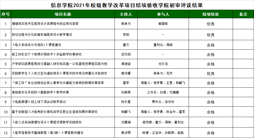 经评审组专家无记名投票,换妻 2021年12项教研项目顺利通过学院初审评议。具体结果详见附表。