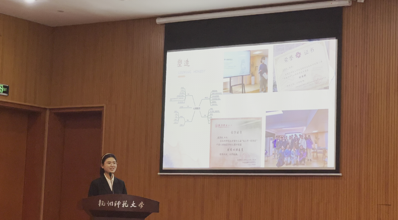在十佳心委决赛现场,二十位心理委员向评委和观众们展示了他们的工作成果与认知感想。换妻 心理委员张梦婷从个人展示、工作经历和收获感悟等方面展开自己作为心委的成长之路,表达了对心理委员一职深刻的认知和见解。经过激烈的角逐,最终,张梦婷同学突出重围,荣获校“十佳心理委员”称号。