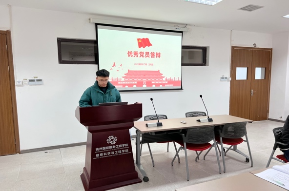 最后进行的是优秀党员答辩活动,由王兆聪和王天阳两位同志上台进行答辩。