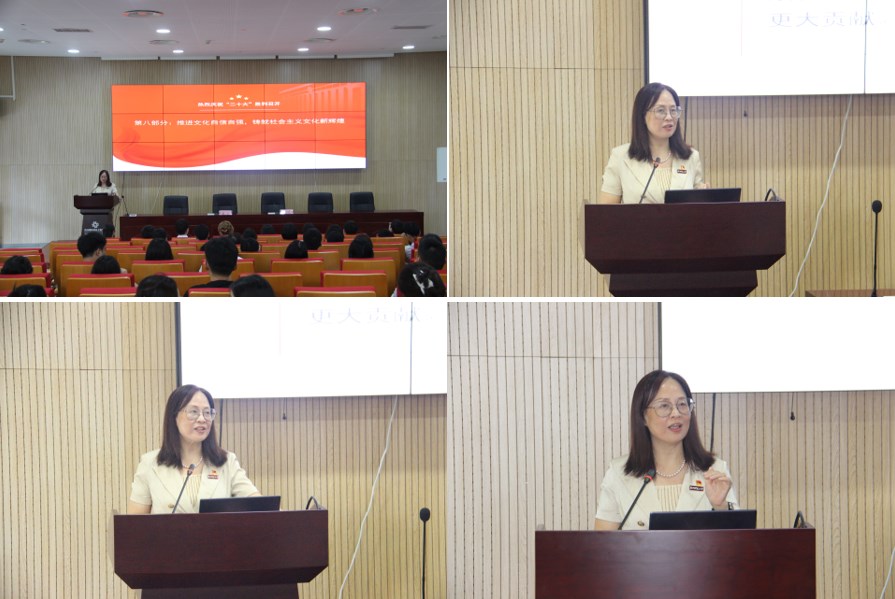 本次最后一节党课第一项议程是由周春儿书记向各位毕业生党员进行党的二十大报告解读与党员的责任的教育。她将党的二十大报告进行了详细的解读,并强调,作为一名党员,我们要时刻记得时代呼唤我们,人民期待我们,唯有矢志不渝、笃行不息,方能不负时代、不负人民。要时刻牢记党员身份,履行党员责任,为全面建设社会主义现代化国家、全面推进中华民族伟大复兴而团结奋斗。