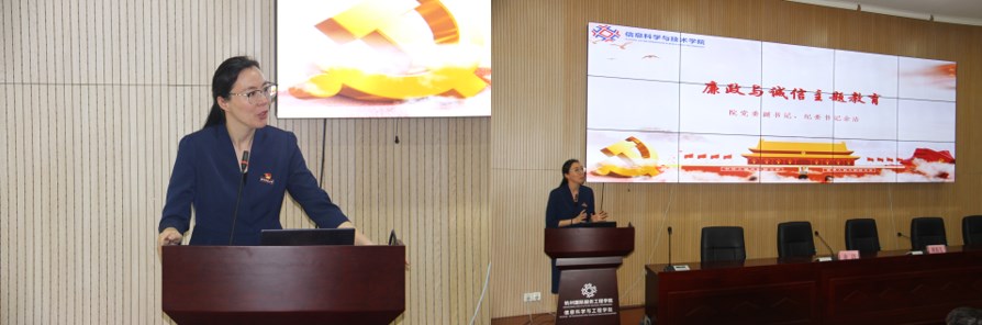 最后一节党课的第二项议程是由院党委副书记余洁向全体毕业生党员做了廉政与诚信主题教育。余书记向全体毕业生党员说明了作为一名廉洁、诚信的党员的要求。最后,她希望全体毕业生党员心有所畏,言有所戒,行有所止,简简单单的十二个字,字字珠玑,向全体毕业生党员敲响了警钟,要求全体党员在离开校园、走向社会之后继续用高标准严格要求自己,做一名廉洁、诚信的优秀共产党员。