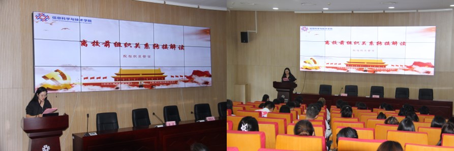 最后一节党课的第三项议程是由院组织员管雪向各位毕业生党员解读了离校前如何进行组织关系转接,为即将离开校园、转移党组织关系的各位毕业生清晰地说明了党组织转接的各项政策。