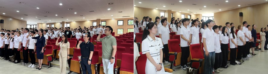 在最后一节党课的最后,全体党员起立重新合唱了《国际歌》、重温了入党誓词,并且院党委向全体毕业生党员赠送了党徽以及新党章。全体毕业生党员不忘入党初心,激发继续为人民服务、为社会主义事业奋斗的决心。