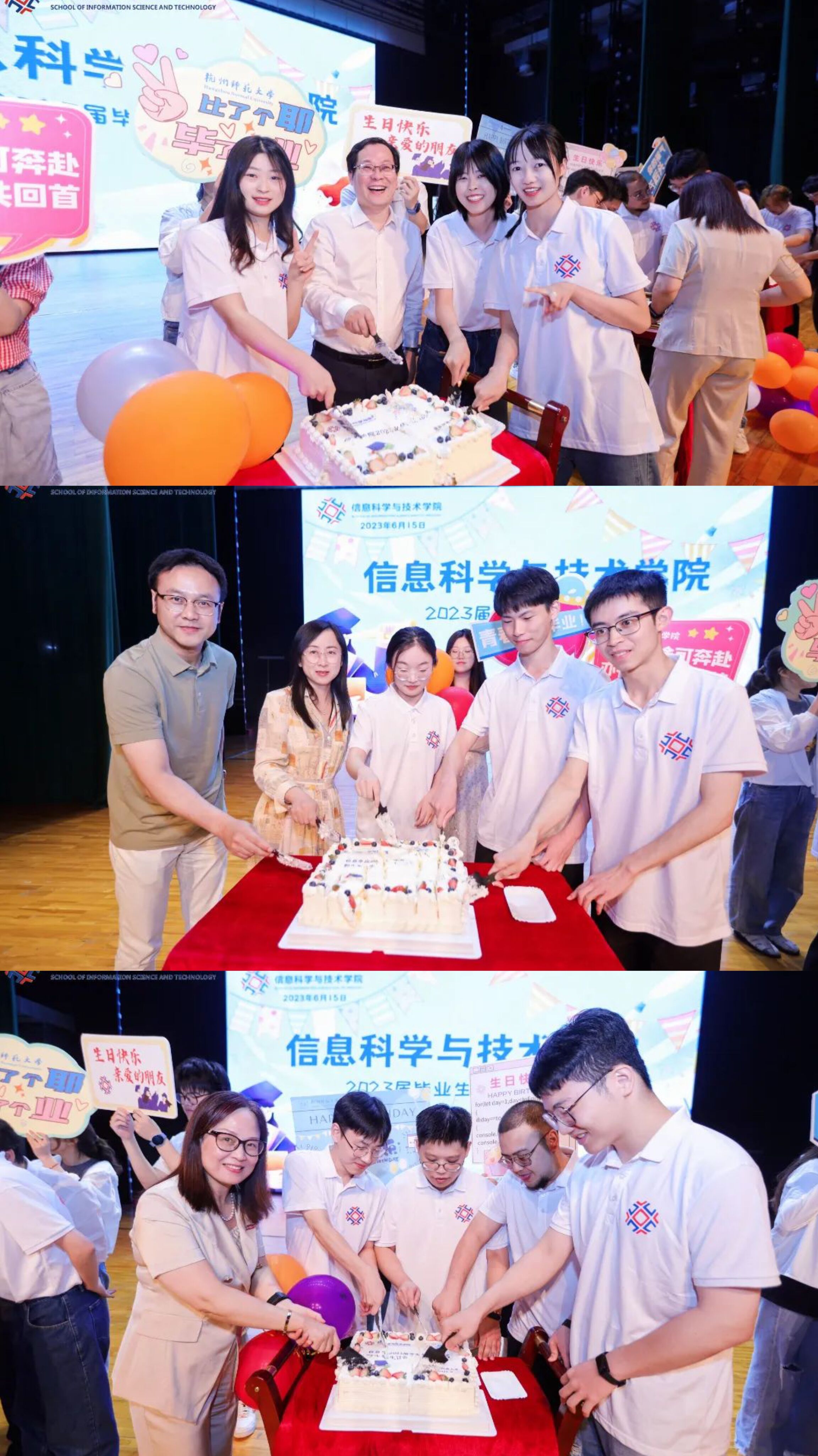 仪式部分落下帷幕,学院特别为近期生日的老师和毕业生举行了集体生日会。台下的师生与台上的寿星共同许愿:祝自己在未来的工作和生活中一切顺利,幸福安康。祝愿所有的毕业生能够展翅鹏飞,不负热爱,奔赴山海,奔向未来!