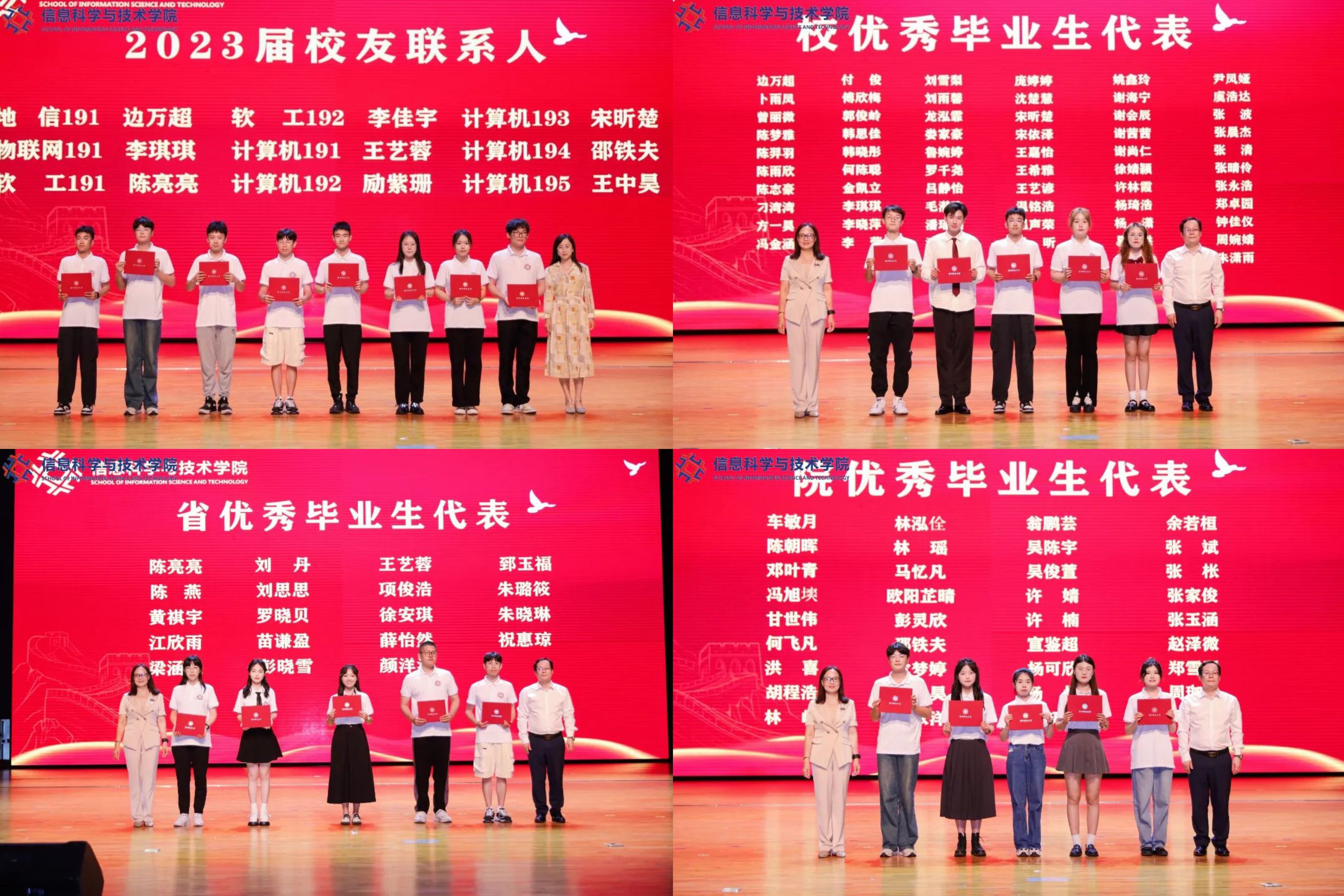 周书记为毕业生送上了自己的三份嘱托:一是规划未来立大志,在“中国式现代化”建设中,追逐中华复兴梦。青年兴则国家兴,青年人是祖国现代化建设的生力军,责任重大。所以,毕业生一定要树立远大理想,把个人的成长与现代化建设的需要紧密结合,尽早地规划未来,规划人生,到实践中去锻炼,奉献祖国。将小我主动融入历史坐标,把实现个人梦融入民族复兴梦之中,让家国情怀内化为人生支点,做到心中有梦、勇于追梦、努力圆梦,从小事做起,从现在做起,让青春在为国家和人民建功立业中焕发出绚丽的光彩。二是永不言弃担大任,在“数字中国”建设中,锻造过硬专业本领。世界形势纷繁复杂,我们遇到了很多艰难与挑战,但希望毕业生们面对未来永不放弃,有锲而不舍的精神,不怯懦失败,不忧心挑战,相信办法一定比困难多。信息人都是坚定的执行者,是永不放弃的追梦者,既然选择了远方,我们就要风雨兼程、矢志不渝的朝着目标奋进,“无限风光在险峰!”。三是锤炼品格明大德,在终身学习中汲取智慧,全面发展堪当时代新人。人无德不立,德才兼备、以德为先,德是首要、是方向,一个人只有明大德、守公德、严私德,其才方能用得其所。只有全面提升自身综合素质,尽快适应新的环境,争当创新的推动者和实践者,才能为推动我们国家社会的高质量发展和增进人类福祉作出自己应有的贡献。