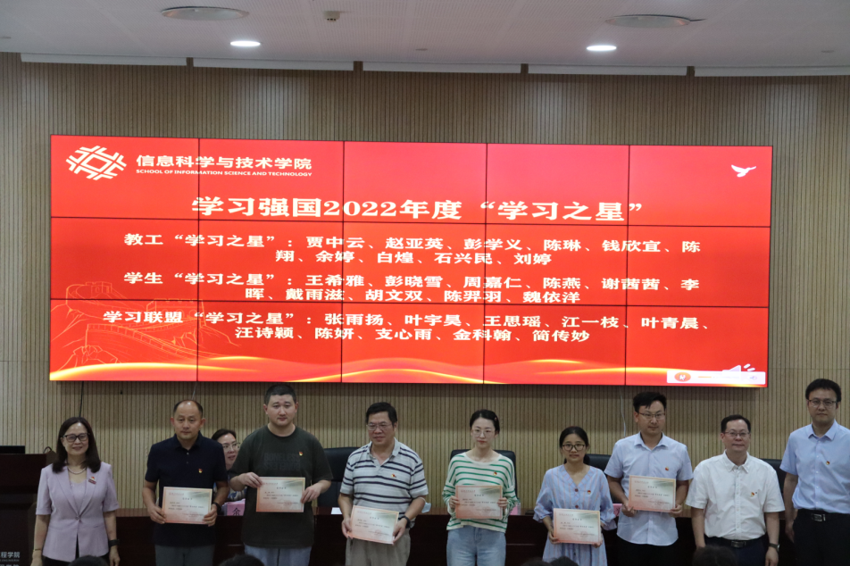 随后,党委委员姚争为副院长宣读了学院党委关于表彰2022年度“学习强国”学习平台先进个人的决定。教工“学习强国”、学生“学习强国”和学习联盟的先进个人代表依次上台领奖。
