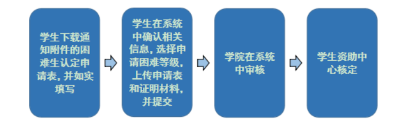 本科生困难生认定工作在“学生工作管理服务平台”(以下简称“学工平台”)(//xgxt.changeqi.com/)中进行。具体流程如下: