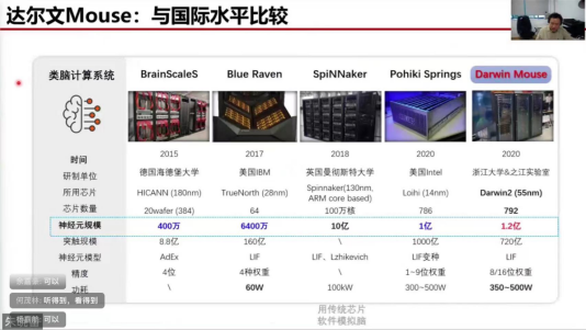 首先,朱老师为我们介绍了神经形态芯片的独特之处,在于其模拟神经元突触存算一体的机制,打破了传统计算架构的内存墙和IO瓶颈。通过借鉴生物大脑中神经元之间的连接方式,神经形态芯片能够实现高效的信息传递和处理,大大提高了计算系统的性能。此外,神经形态芯片还利用了基于事件驱动的稀疏脉冲信号传输特性,实现了超低能耗。相比于传统计算架构,神经形态芯片在能耗方面有着明显的优势。