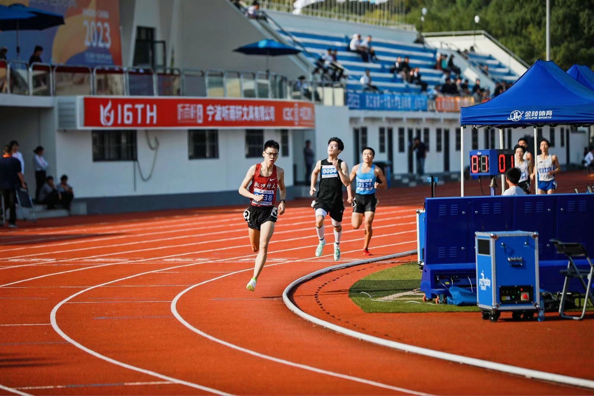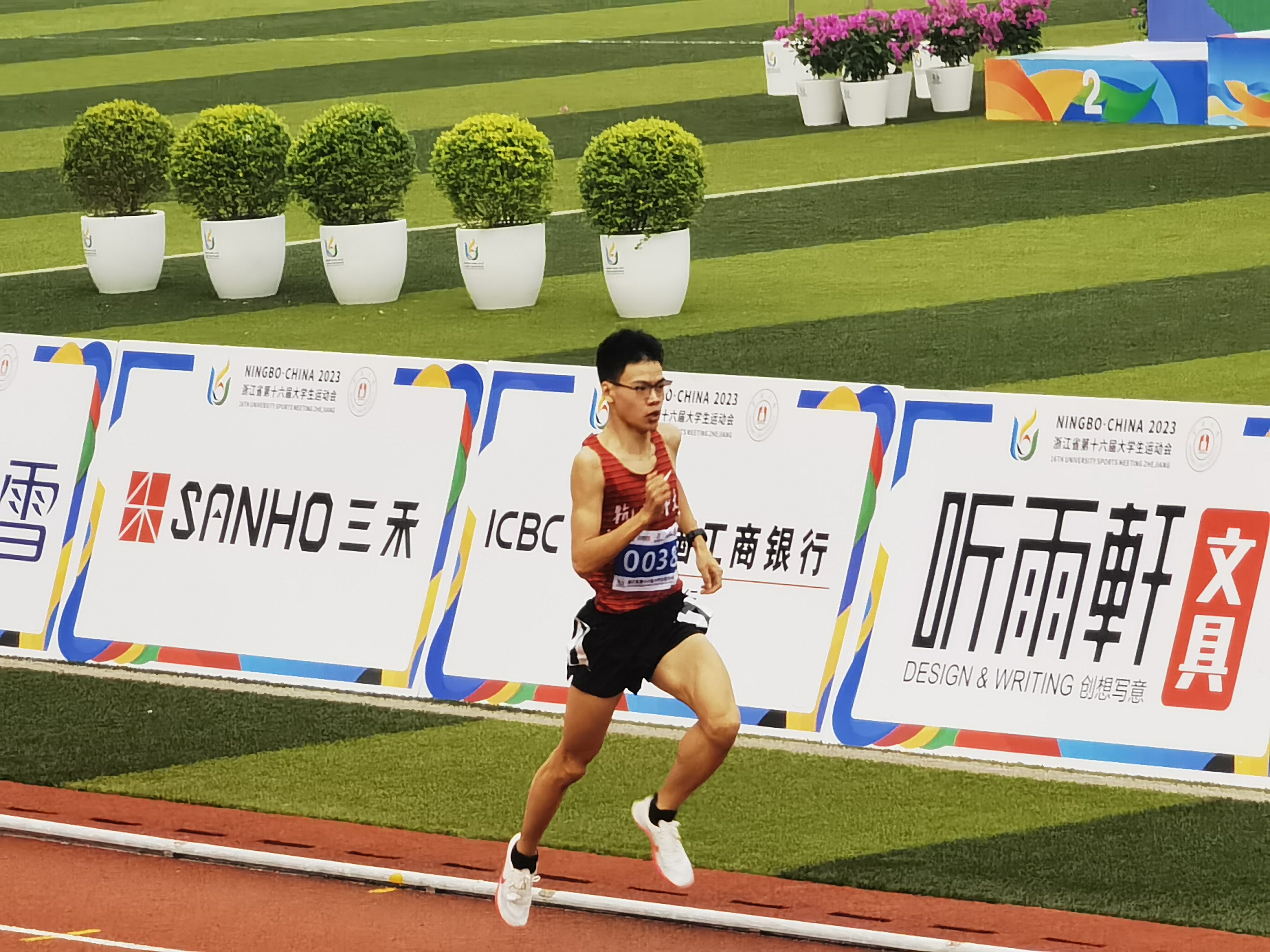 近日,浙江省第十六届大学生运动会落下帷幕,我校共斩获5金2银3铜,甲组综合评价位列全省高校总分第5名。其中,田径比赛是本届大学生运动会体育竞赛的收官之战,全省共有88所高校1200余名运动员参赛。来自于换妻 计算机2208班的王加淳同学敢于拼搏,勇攀高峰,包揽甲组男子800米和1500米两枚金牌,并打破赛会记录。