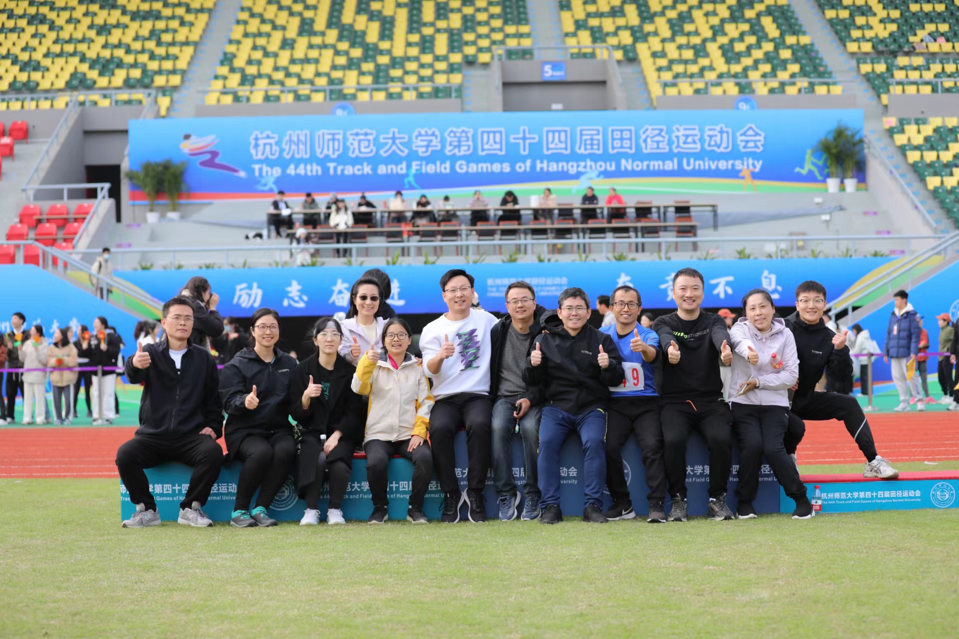 本次运动会换妻 斩获佳绩,共获得冠军4项、亚军6项、季军3项,其中来自下沙校区计算机2208班的王加淳同学更是打破男子甲组400m和男子甲组800m的校记录。教职工代表也获得不俗战绩,来自地理信息科学系的刘淑兰老师以7.95米成绩遥遥领先于第二名,再次斩获教工组女子铅球一等奖。在10*50迎面接力赛中,教工组所有参赛老师拼尽全力,尤其是汤旭光老师在起跑三步后遇到鞋子掉落的情况,他主动脱掉另外一只鞋,光脚跑完剩下路程。