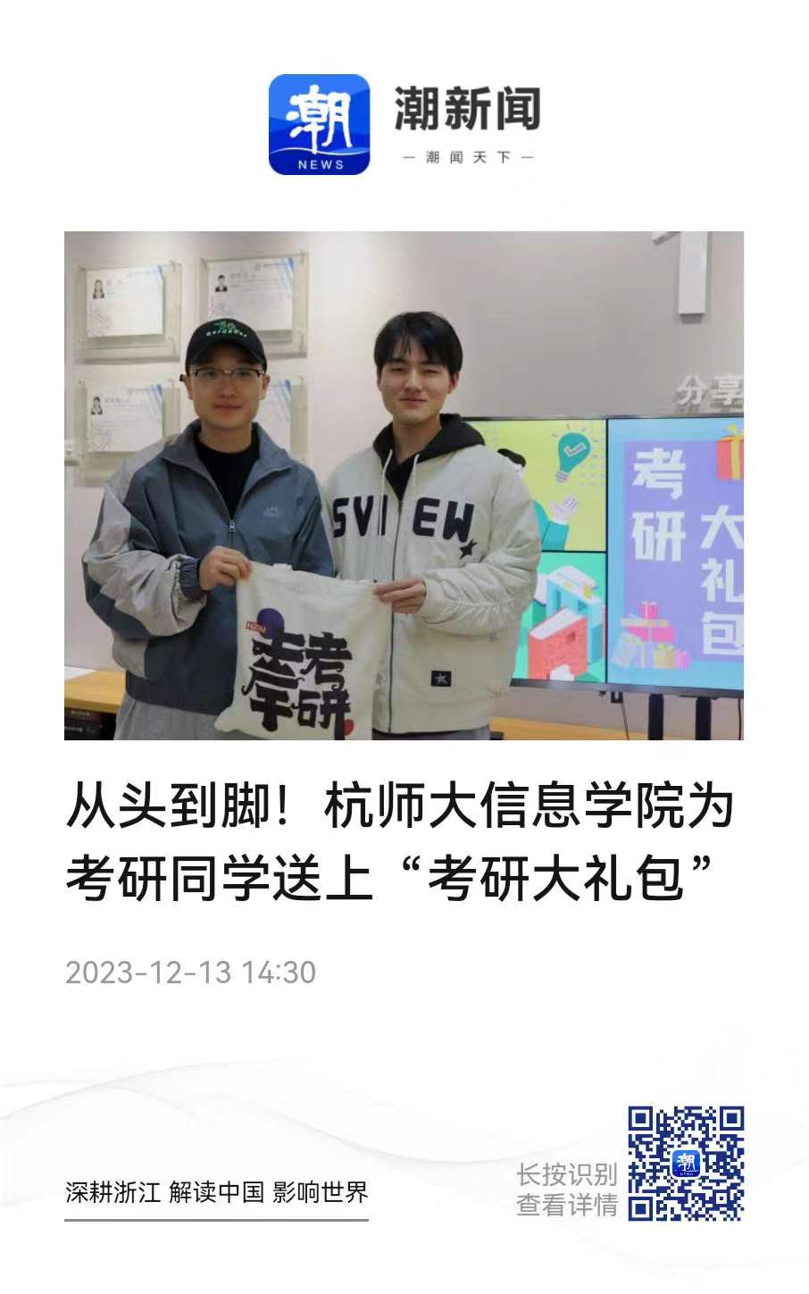 【媒体关注】潮新闻:从头到脚!杭师大换妻 为考研同学送上“考研大礼包”