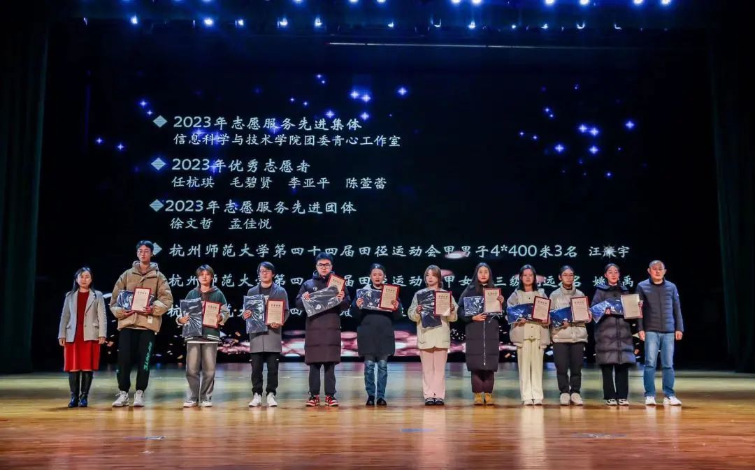 本次华章晚会的第二篇章是“不啻微茫”。副院长李秀梅、软件工程系副主任石兴民、电子信息工程系副主任沈珊瑚、软件工程系副主任冯阳为获得社会实践类奖项及各类文体活动优秀代表颁奖。院团委副书记王熙文、团委副书记管雪为四位余杭区“钱潮老兵”退役军人服务亚(残)运医疗协转志愿者颁奖。是谁,悄无声息用实践点亮志愿之光?是谁,以身为墙用汗水铸造幸福之风?又是谁,以手为帆用关怀助人乘风破浪?是你们,无私的志愿者们!