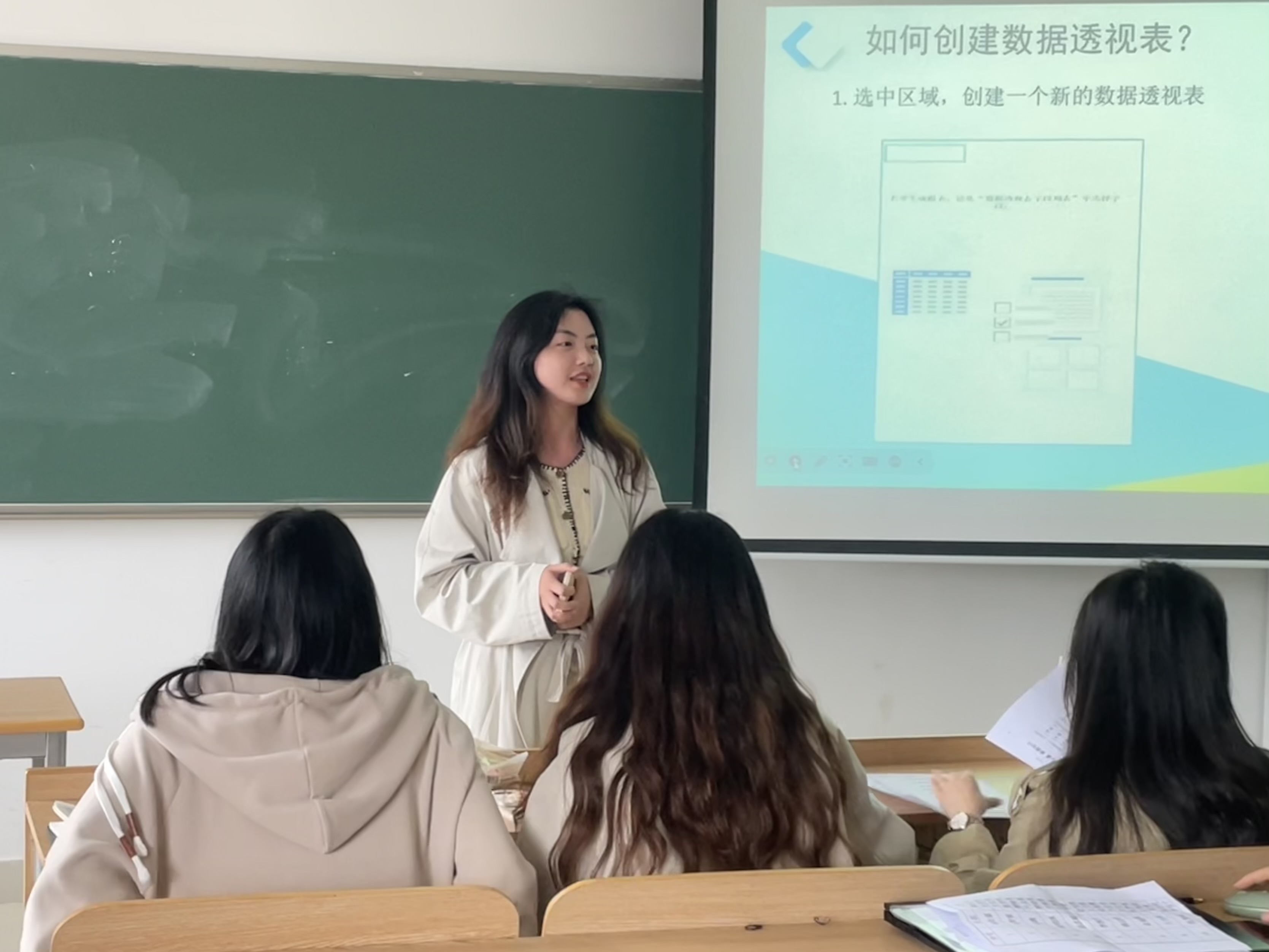 2024年3月25日,学院第三次“2021级师范生小讲堂”在勤园6-403顺利举行。计算机师范2021级部分同学参加。学院辅导员吴婧老师、计算机191班杨子月、陈绮琪、王迪学姐到场为上台的同学进行指导点评。