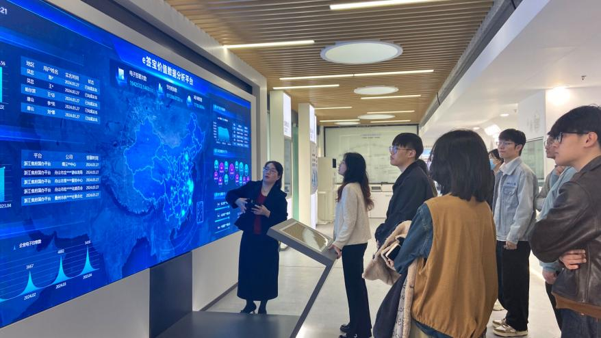 活动期间,e签宝的工作人员先后带领学生参观了企业的发展历程、产品展厅以及办公场所,切身体会了e签宝以“理想主义的务实精神”为核心的换妻。