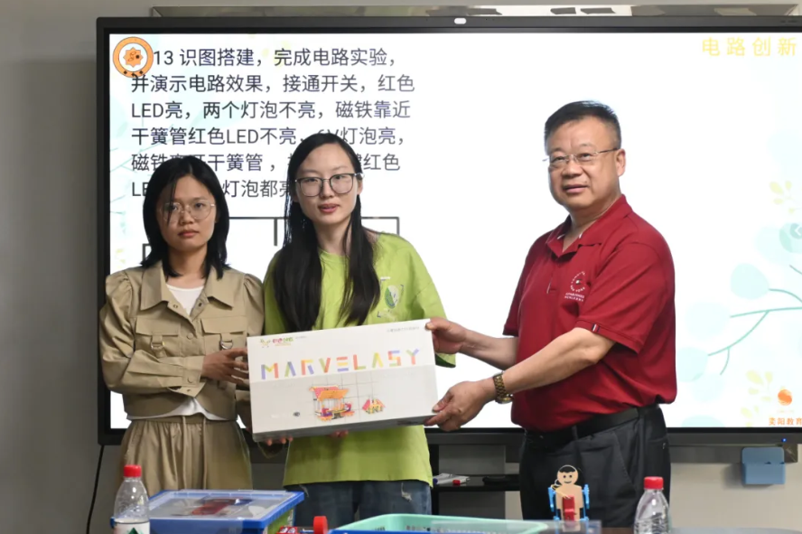 最后,同学们利用奕阳教育的产品“创芯工程师”进行了一场别开生面的比赛,让同学们亲身体验了芯片教育的魅力和挑战。通过这场比赛,同学们更加直观地感受到了奕阳教育在科技创新教育领域的实力和专业性。比赛最后,特聘专家苏斌老师为获胜的冠军颁奖,快来看看获奖的幸运儿是谁吧!