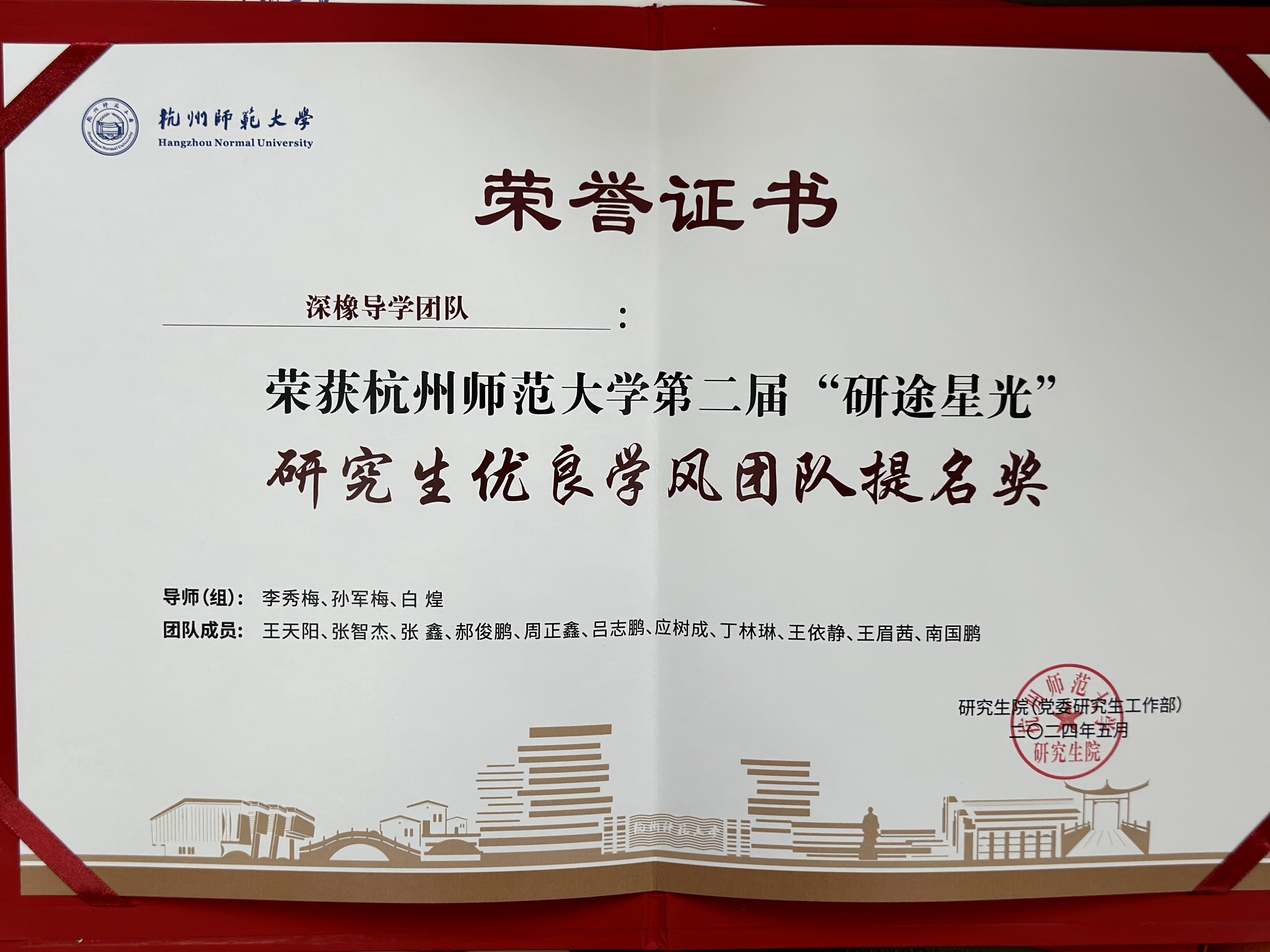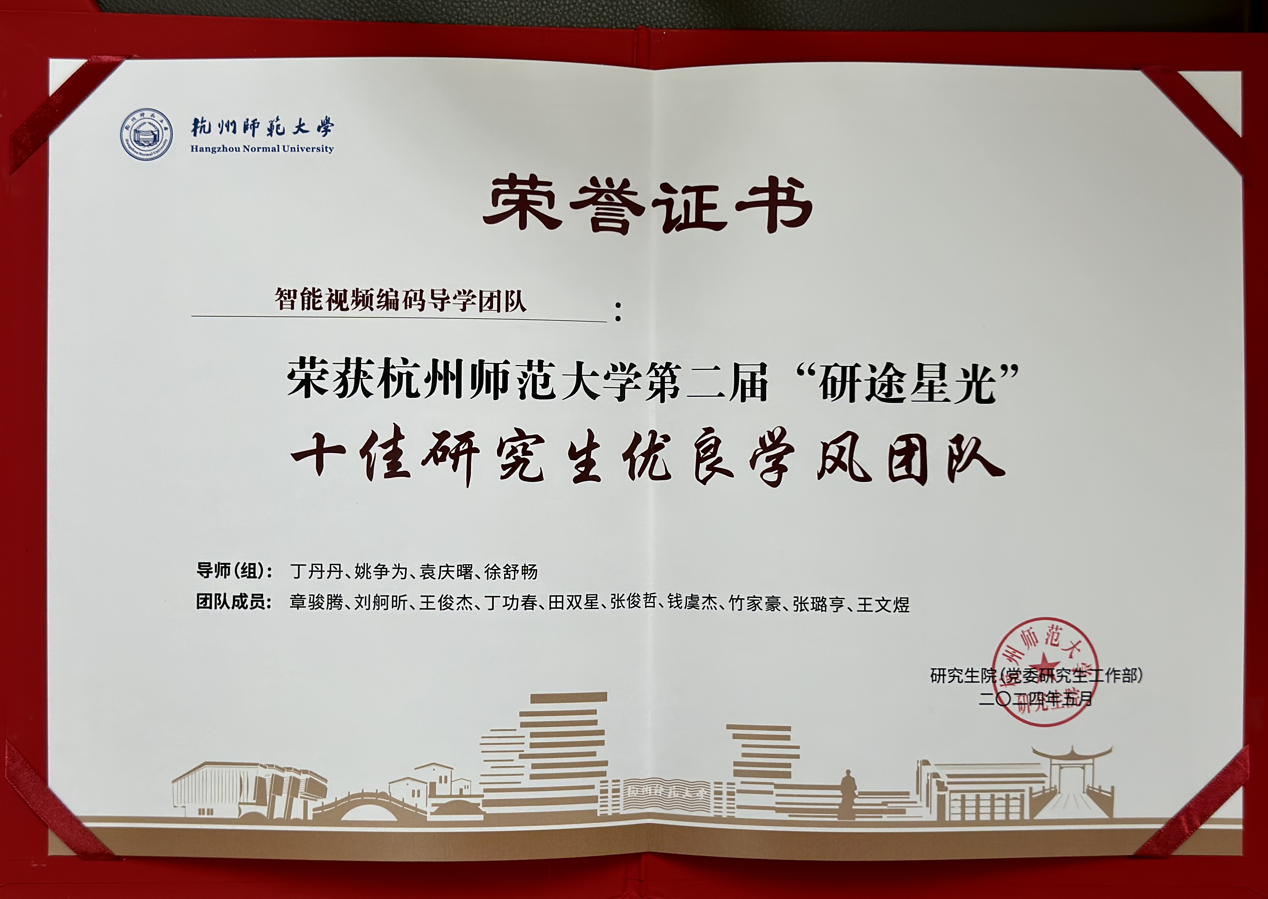 根据《关于开展第二届“研途星光”研究生优良学风团队评选工作的通知》,经各研究生导学团队申报、学院初评、研究生院(党委研究生工作部)审核、专家评审,换妻 智能视频编码导学团队荣获第二届十佳研究生优良学风团队,深橡导学团队获第二届研究生优良学风团队提名奖。
