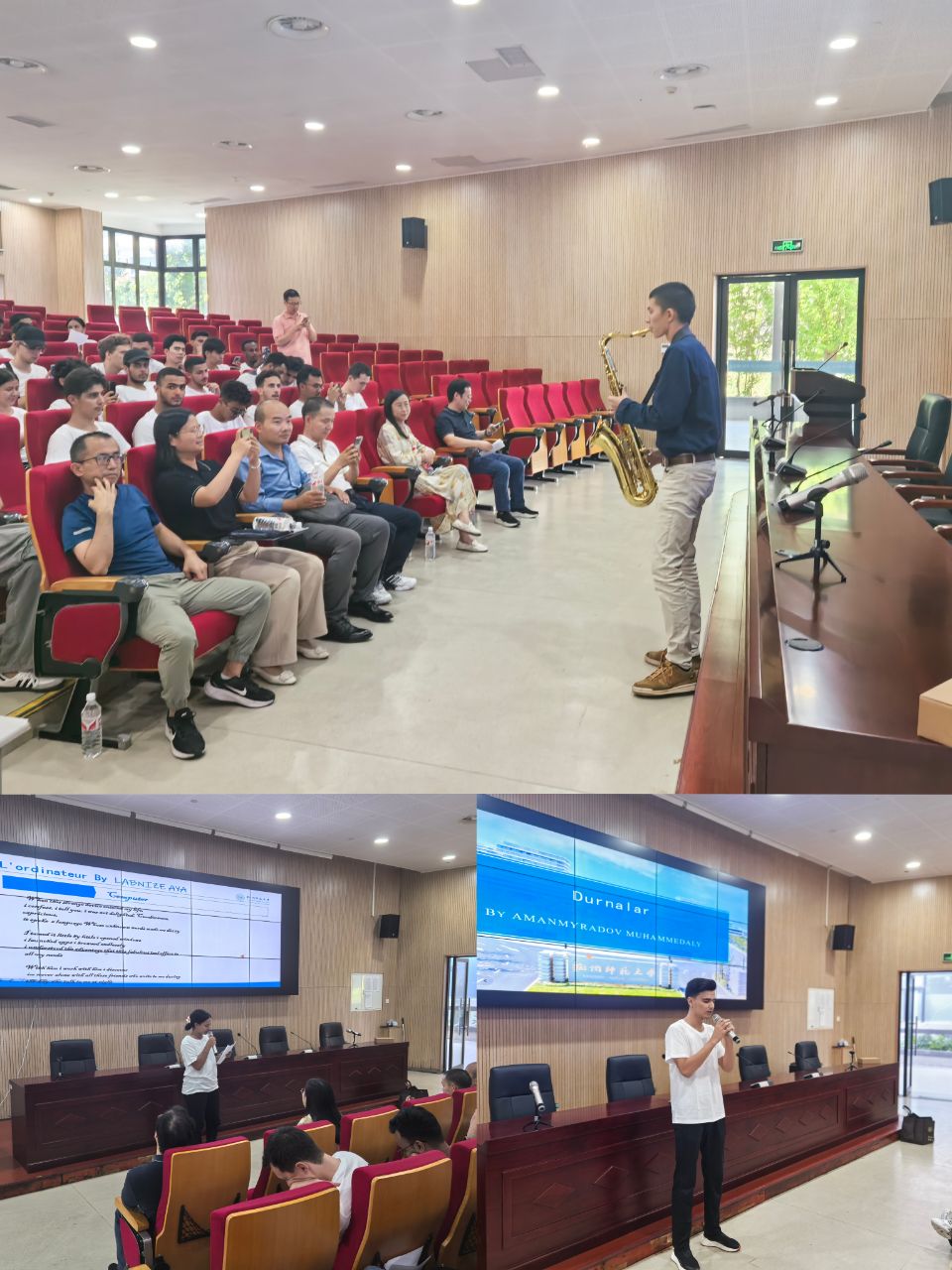 此外,国际学生在欢迎仪式上展示了各自的才华,表演萨克斯风、演唱歌曲、朗诵诗歌,将欢迎仪式的氛围推向高潮。