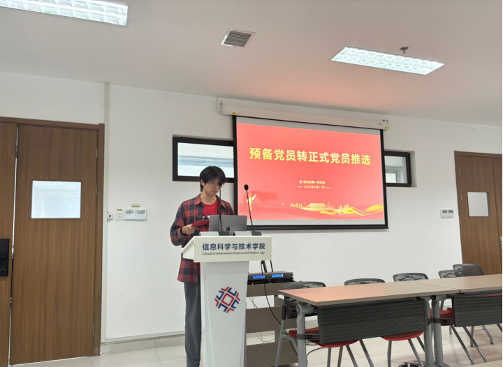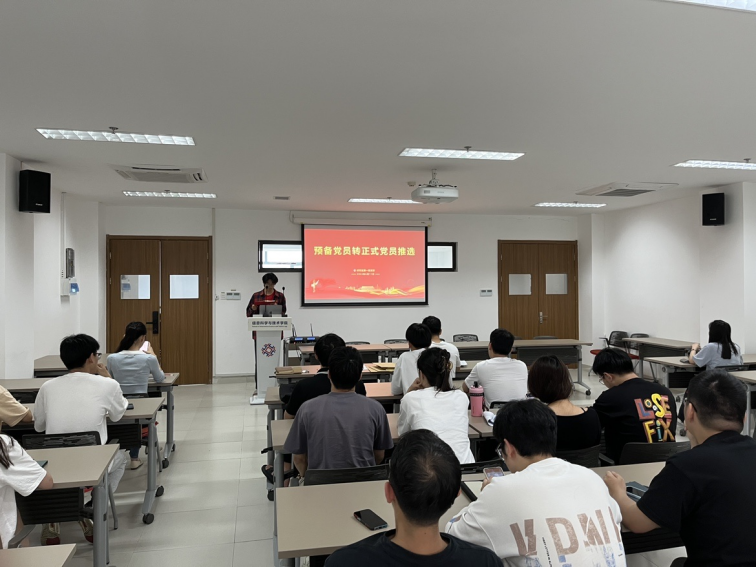 首先,在会议上讨论了钟强、邹宸、高聪聪、赵媛媛四位同志转为正式党员的相关事宜,几位同志也逐个汇报了一年的预备期的工作表现,之后他们的入党介绍人介绍了各自的基本情况,与会党员也发表了相关意见,最后由与会的正式党员举手表决。