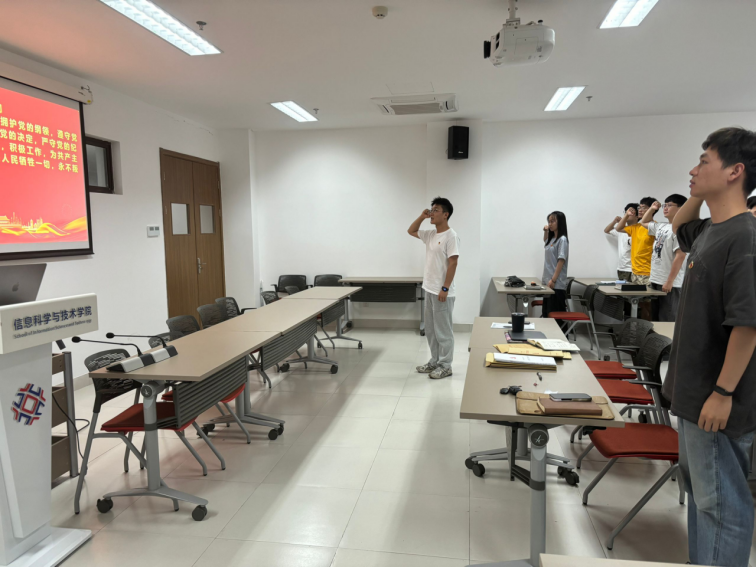 随后在支部书记王熙文老师的带领下,支部成员共同重温了入党誓词。