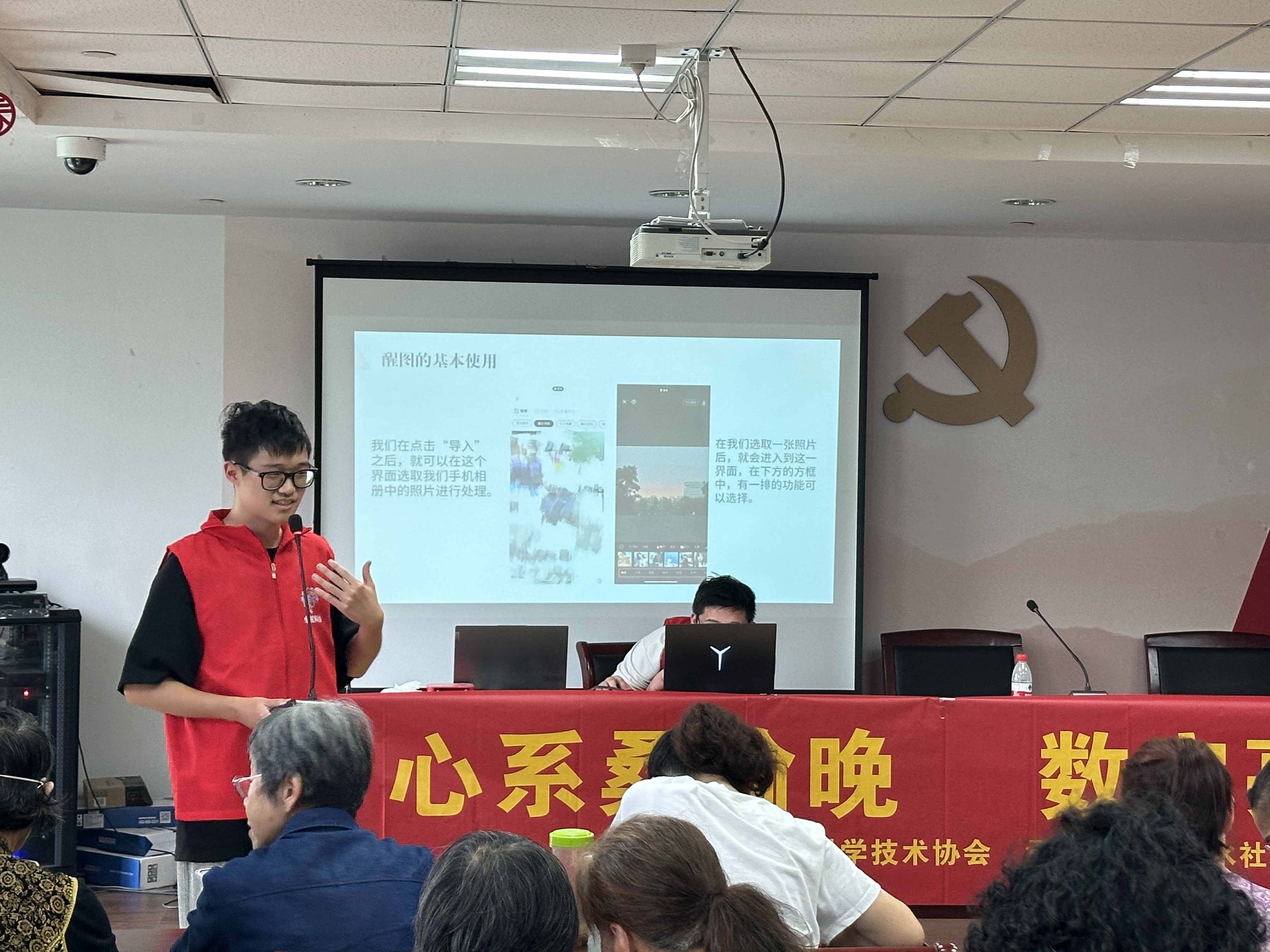 “每次看到年轻人用手机把照片修得那么好看,我都很羡慕,可自己就是不会弄。”“交水电费还要专门跑一趟,要是能学会在手机上缴费就好了。”老人们的话语反映出他们对掌握新数字技能的渴望。本次活动以“数字时代惠老行,助力银发新技能”为主题,以提升老年人数字技能为目标,为老年人开启了数字应用的学习之门。 志愿者吴鹏泽担任醒图 P 图操作的授课人。他从基础操作入手,耐心地向老人们讲解如何调整图片的亮度、对比度、色彩等参数,如何运用滤镜和贴纸让照片更加生动有趣。通过实际案例的演示,老人们直观地感受到了醒图软件的强大功能和便捷之处。