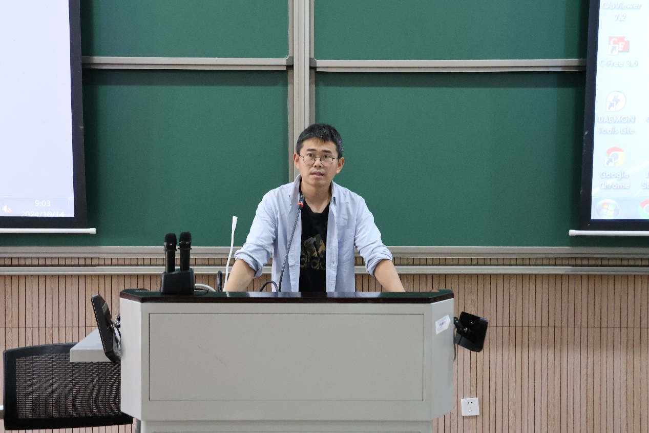 10月14日上午,学院2022级计算机师范生教育见习讲座第一讲在勤7-101顺利举行,浙江省崇德中学教师符孝天为同学们开讲。学工办主任、团委书记杨鹏飞老师到场参加,计算机221班班长沈可同学主持,全体2022级师范生到场聆听。