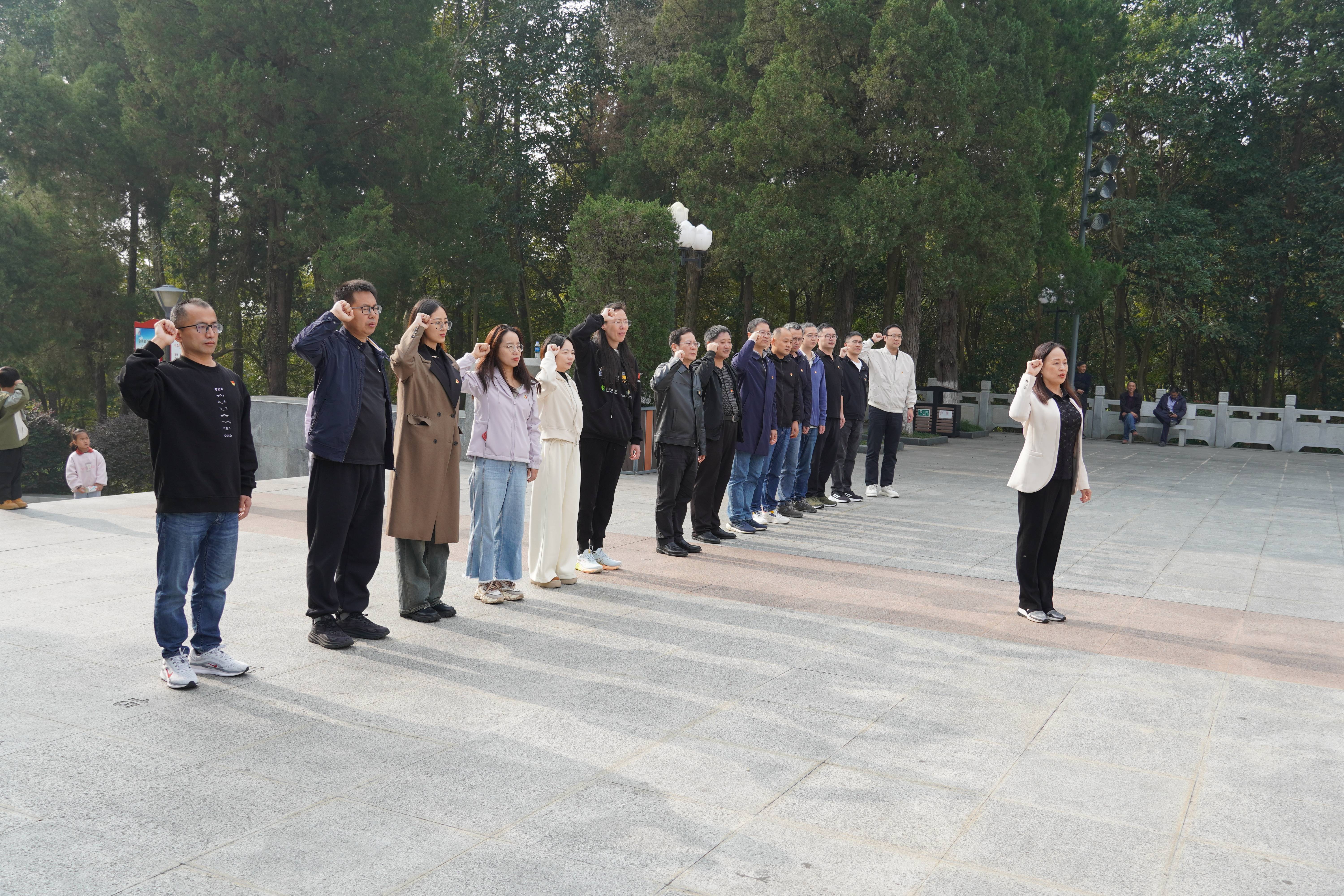 红军广场,这里承载着厚重的革命历史和先烈们不朽的精神。在鲜艳的党旗下,由学院党委书记周春儿领誓,党员们集体重温入党誓词。那一声声激昂的誓言,在广场上空回荡,彰显了党员们对党的忠诚和为人民服务的决心。