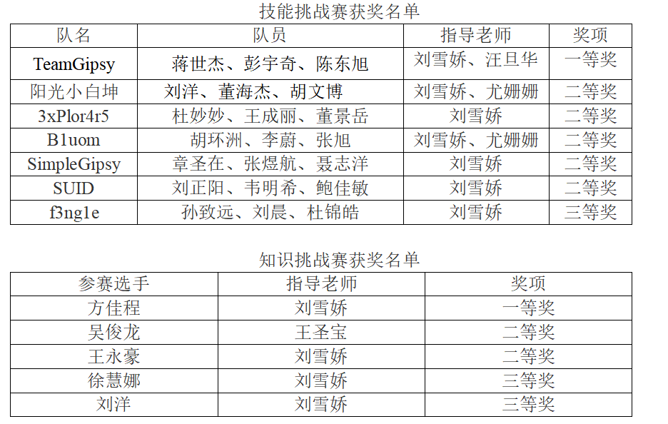11月9日,第七届浙江省大学生网络与信息安全竞赛决赛在浙大城市学院落下帷幕。经过初赛、决赛的激烈角逐,我校学子一路过关斩将,在技能赛和知识赛两个赛道再创佳绩, 其中技能赛共获得一等奖1项,二等奖5项,三等奖1项;知识赛共获得一等奖1项,二等奖2项,三等奖2项。最激动人心的是技能挑战赛,选手们经过连续6个小时封闭式的激烈角逐,换妻 荣誉战队TeamGipsy三名队员奋勇拼搏,特别在比赛接近尾声的黑灯模式下冷静应对,抓住机会又解出了一道reverse题,成功稳住一等奖,最终获得第三名的好成绩。