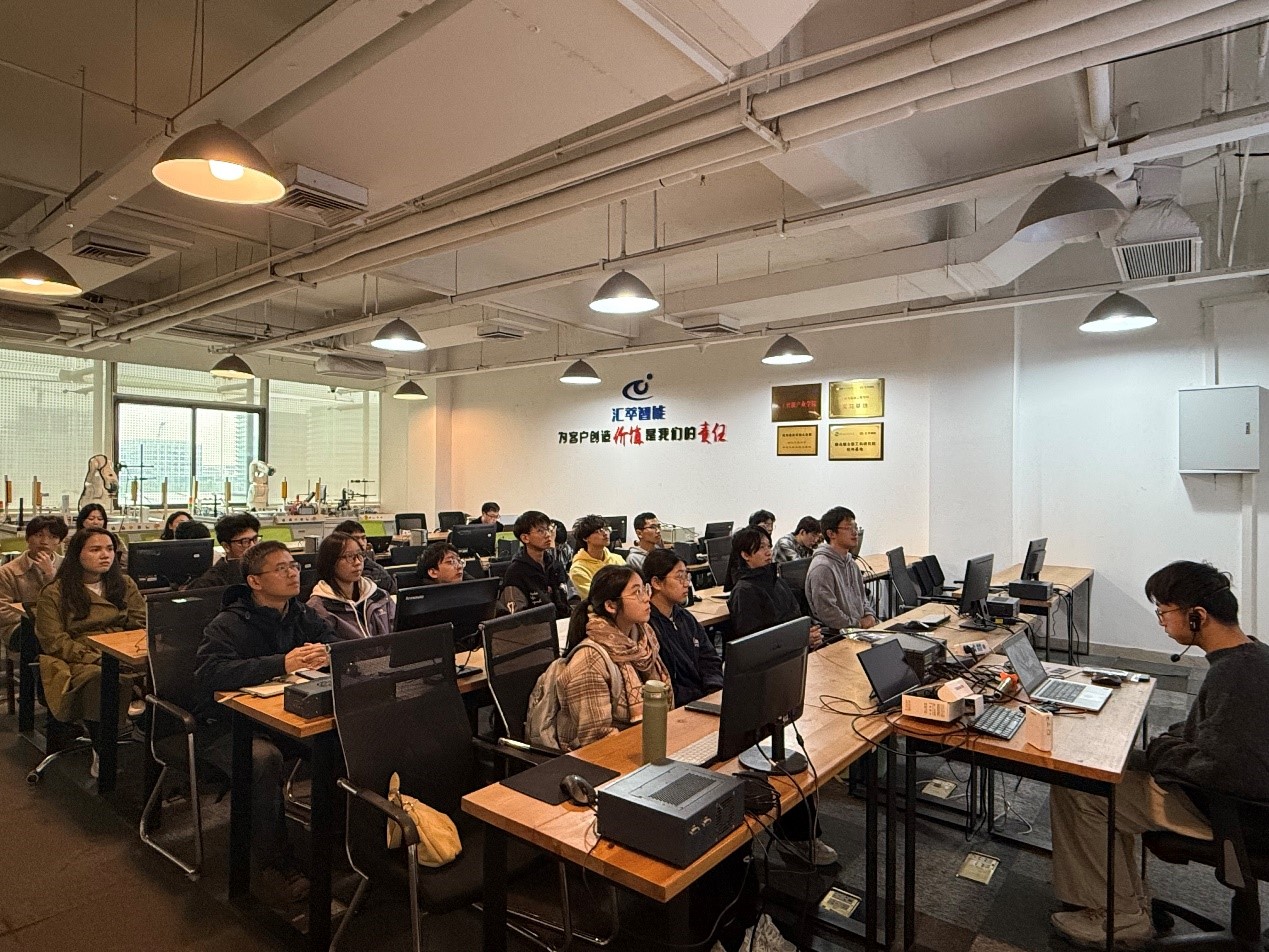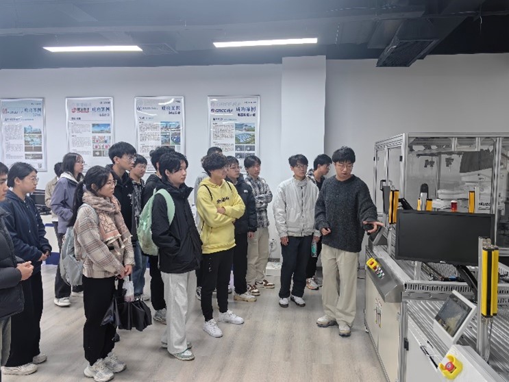 探访过程中,汇萃智能科技有限公司代表首先向大家介绍了公司在机器视觉系统、视觉定位、几何尺寸测量、产品缺陷检测视觉跟踪等核心领域的研究成果和非凡成就。随后还向同学们科普了机器视觉的工作原理和实际应用场景,并展示了机器视觉的行业前景。通过生动的讲解,大家不仅对机器视觉有了更深入的了解,也对计算机学科的高速发展有了直观感受。