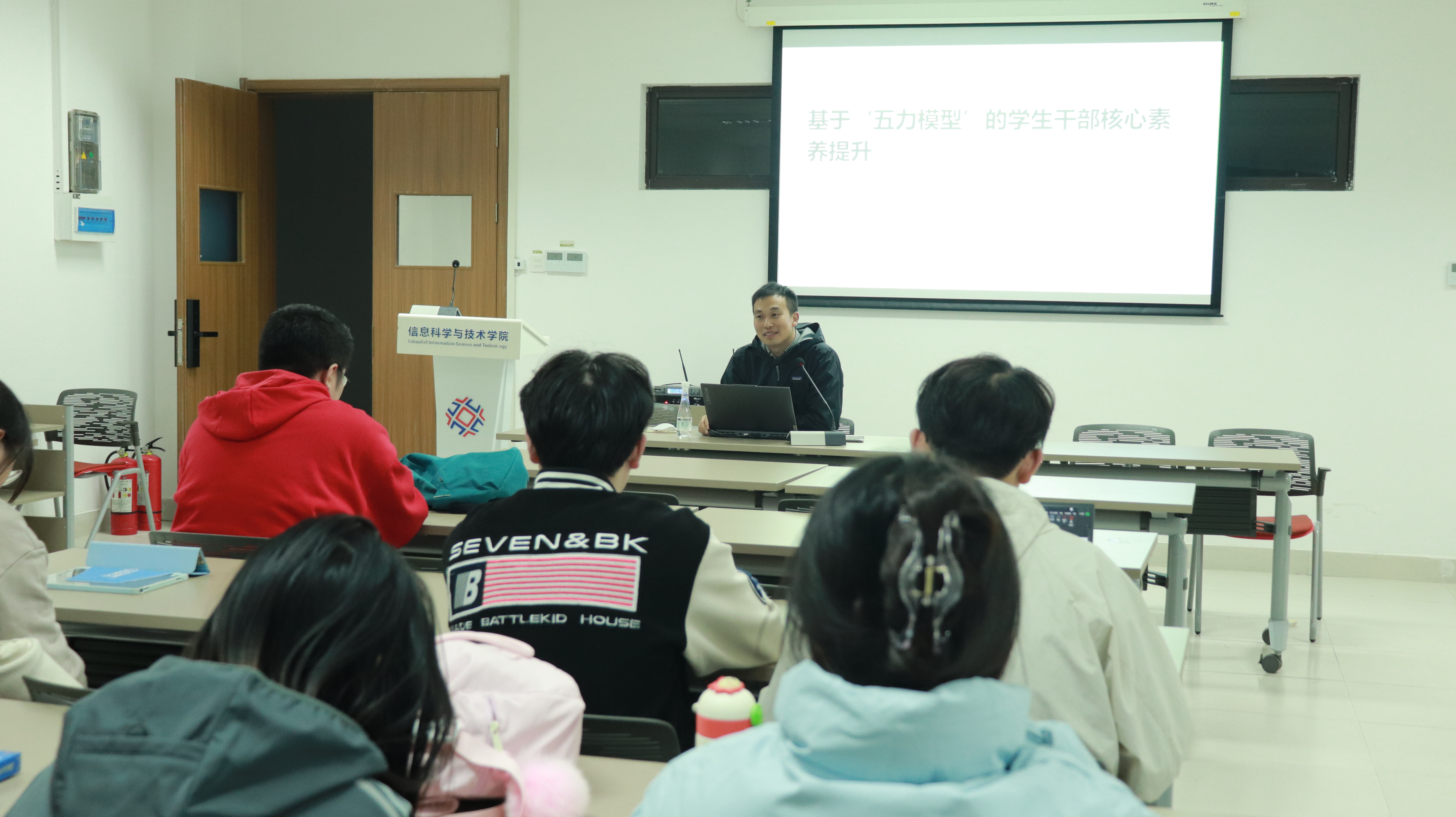 为进一步加强校园学生干部队伍建设,全面提升学生干部的核心素养,11月22日晚上,学院于勤园12-204展开了第七次团学学生干部培训,本次培训会由中国移动“十百千”专家、中国移动智慧家庭运营中心优秀专家、青年骨干人才储老师带来一场主题为基于“五力模型”的干部核心素养提升的分享。